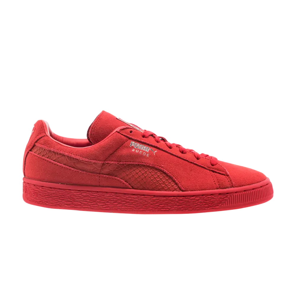 Puma Suede возникла как обувь для выступлений, когда она была выпущена в 1968 году, и ее носили как звезды баскетбола, так и олимпийцы. С тех пор он превратился в повседневный стиль. Puma Suede Classic Mono Reptile продолжает традицию, предлагая смелую монохромную красную цветовую гамму. Низкий замшевый верх дополнен полоской из искусственной змеиной кожи сбоку и серебряным брендингом сбоку. Ниже резиновая подошва с шестиугольным рисунком для дополнительного сцепления.