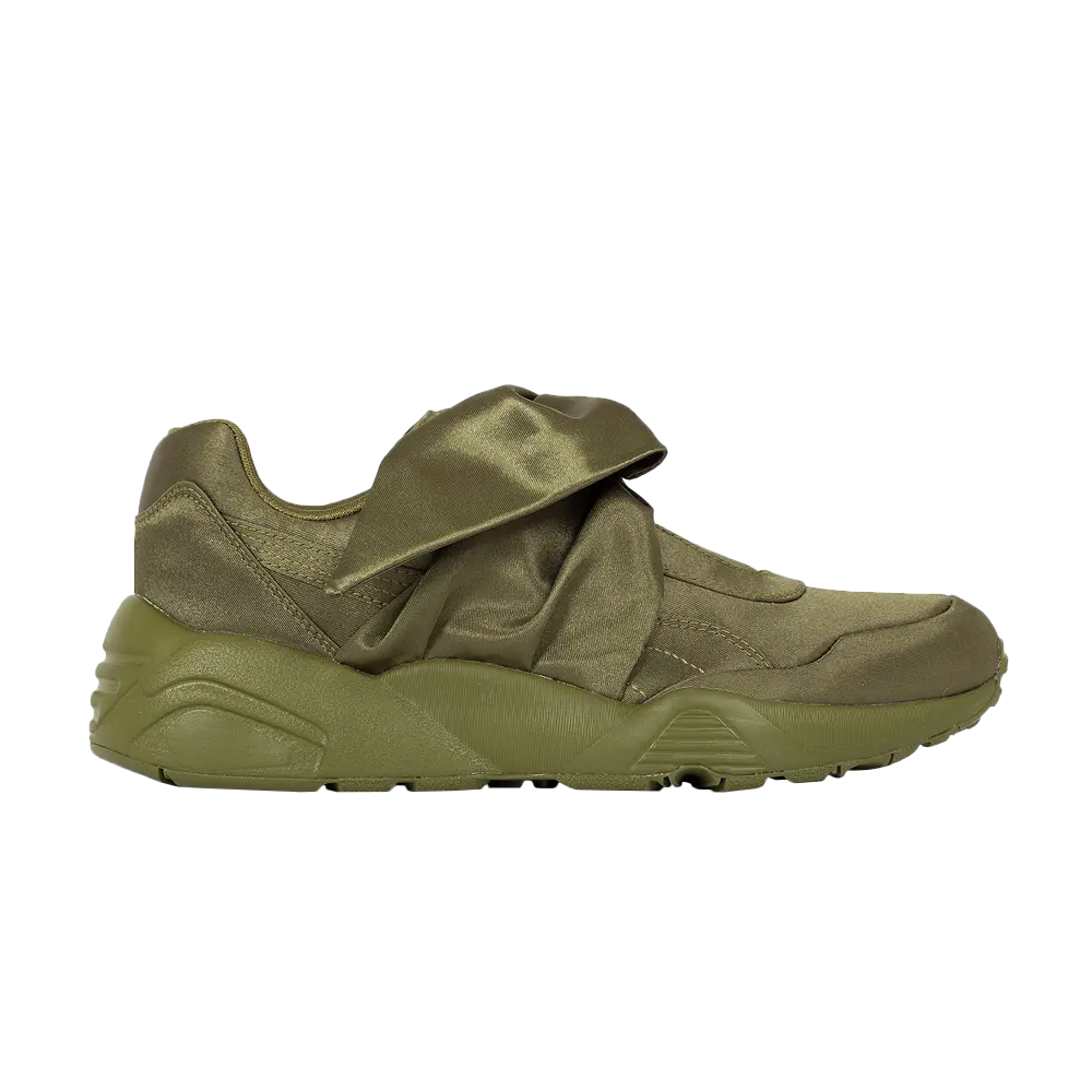 Кроссовки Fenty x Puma Wmns Bow 'Olive' привносят изысканный стиль в современный спортивный силуэт в этом дизайне, созданном в сотрудничестве с креативным директором Рианной. Кроссовки полностью оливкового цвета с блестящим текстильным верхом и объемным атласным бантом на язычке. Классическая строчка Puma и массивная текстурированная подошва сочетаются с формованным протектором, добавляя функциональность и комфорт девичьему, но спортивному дизайну.