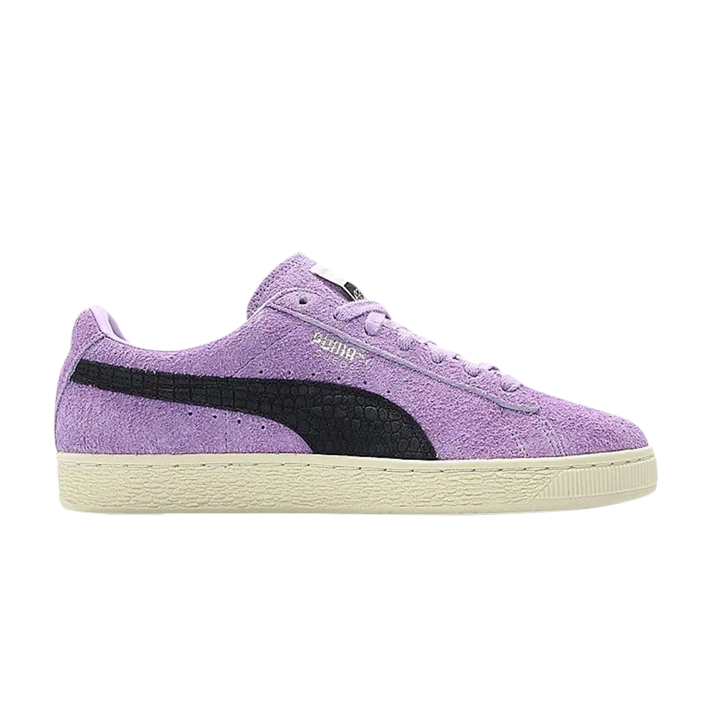 Бренд уличной одежды Западного побережья Diamond Supply Co. объединяет усилия с Puma для совместной работы над двумя кроссовками, вдохновленной архивами Puma. Кроссовки Diamond Supply x Suede Orchid Bloom в винтажном стиле воплощают спортивную классику 68-го года в лавандовом оттенке с черными акцентами по всей поверхности. Накладка Formstrip с тиснением под крокодила проходит по боковине, а фирменный логотип Puma сохранен для вневременной эстетики OG. Двойной язычок в сочетании с ромбовидным узором на пятке дополняет дизайн и завершается резиновой подошвой внизу.
