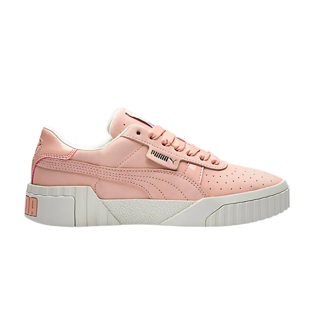 Современный взгляд на классическую модель Puma California 80-х годов — кроссовки Puma Wmns Cali Nubuck с дизайном в стиле ретро, дополненным премиальными материалами и пастельной цветовой гаммой. Эта версия Peach Bud, являющаяся частью трехцветной коллекции, выпущенной в феврале 2019 года, имеет монохромный верх из нубука с лакированной пяткой и перфорированным носком для вентиляции. Фирменные детали бренда подчеркивают весь дизайн — от логотипа из фольги по бокам до фирменной накладки на опалубку. Трехсекционная текстурированная резиновая межподошва подчеркивает дизайн.