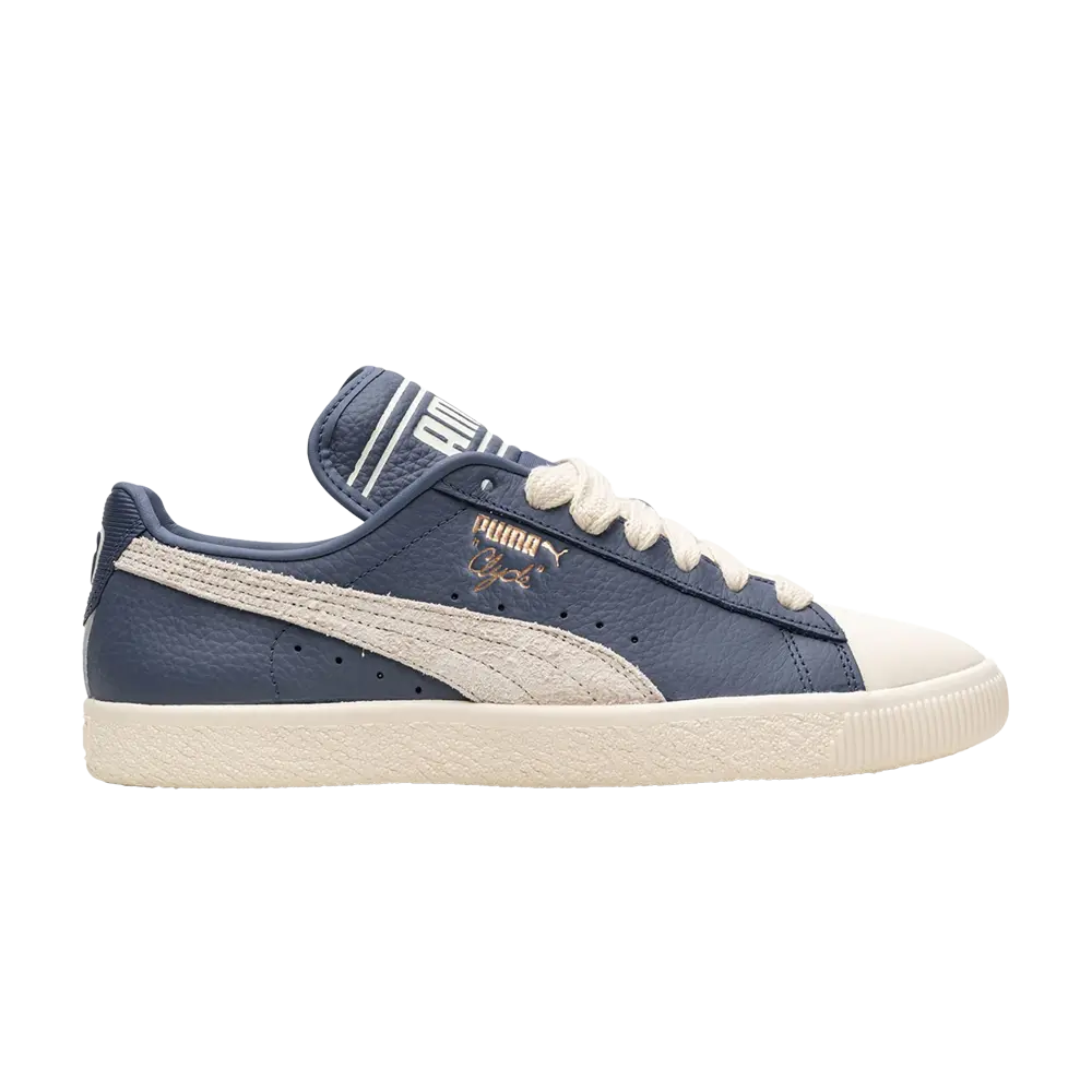 Модель Rhuigi x PUMA Clyde «Inky Blue» демонстрирует возвышенный взгляд основателя Rhude на архивный силуэт. Широкие шнурки фиксируют верх из синей мятой кожи, усиленный прочным резиновым носком с контрастной меловой отделкой. В дополнение к прошитой полоске из ворсистой серой замши элементы брендинга включают крупный логотип PUMA, тисненый на удлиненном язычке. Креплением кроссовок является прочная резиновая подошва с текстурированными боковинами кремового цвета.