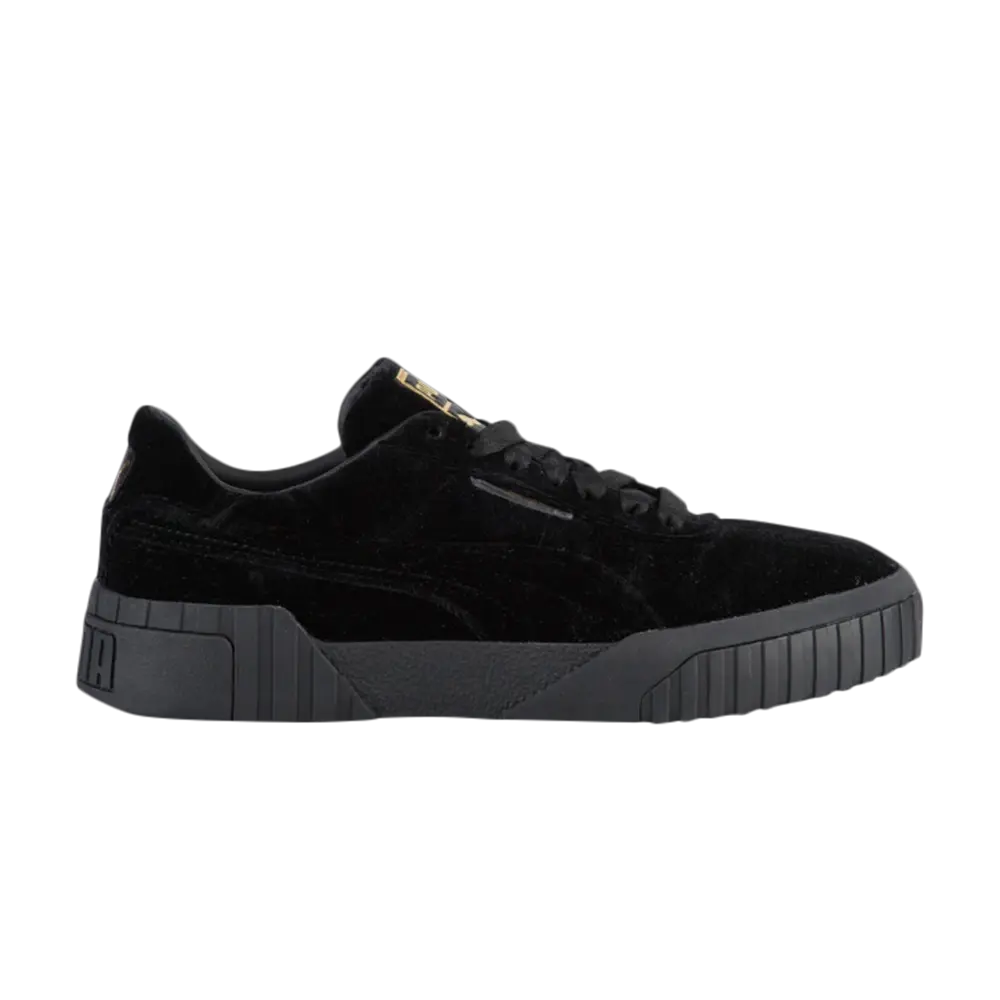 Puma воссоздает классический силуэт Cali в женской модели Cali Velvet Black. Кроссовки имеют черный бархатный верх с тональной полосой на боковине. Низкий верх также может похвастаться кружевной застежкой для индивидуальной посадки, подходящей черной резиновой межподошвой и логотипом Puma из фольги на нашивке на язычке, придающим яркий цвет.