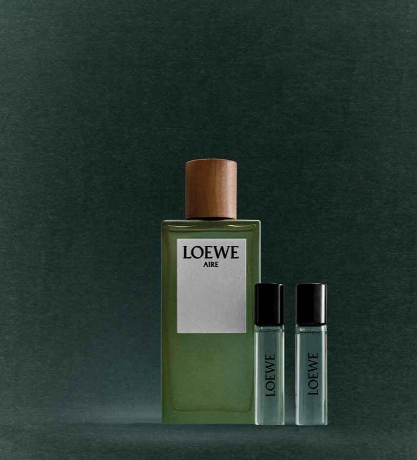 В эту эксклюзивную подарочную коробку входят: LOEWE Aire EDT 100 мл, соответствующий флакон объемом 10 мл и флакон объемом 10 мл с дополнительным ароматом LOEWE Agua EDT.