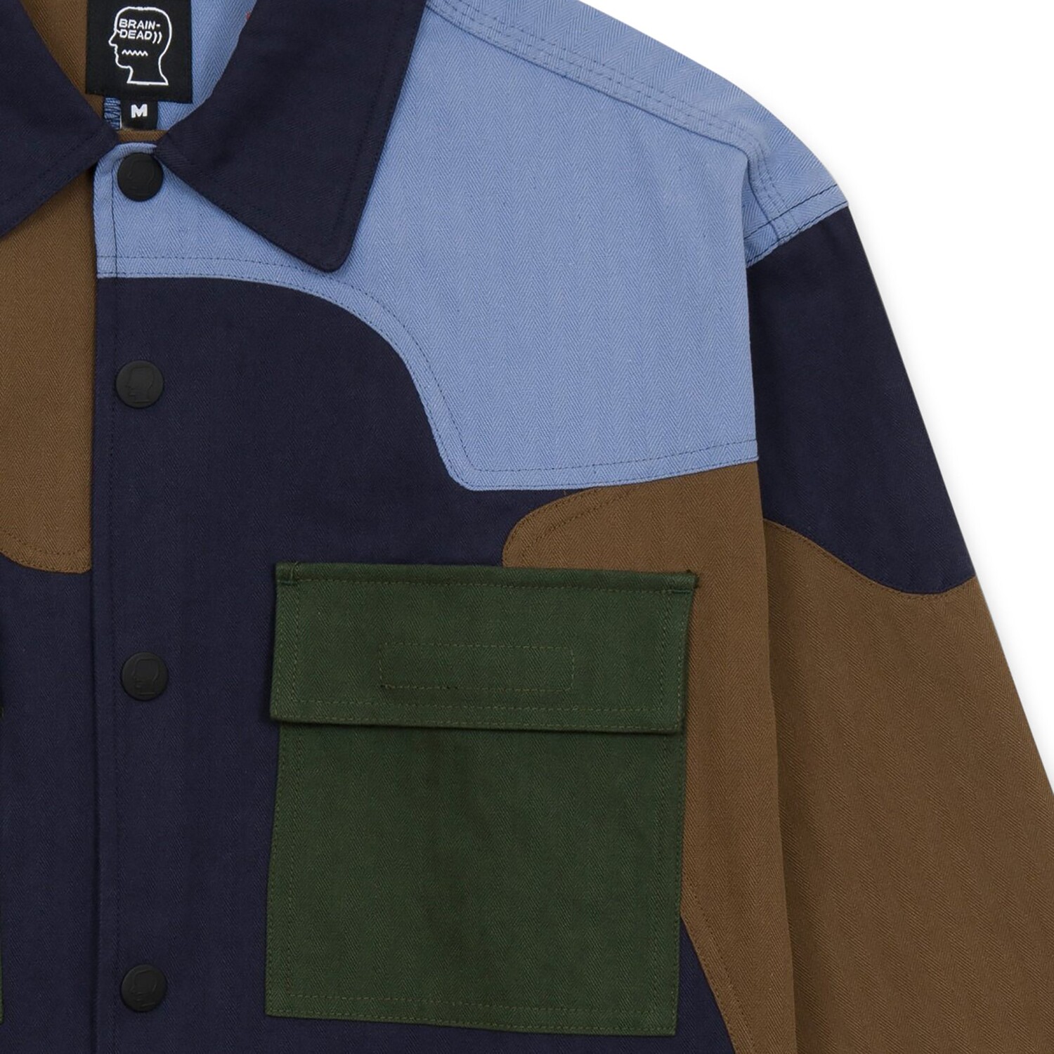 Куртка-рубашка в стиле милитари Brain Dead в стиле пэчворк темно-синего цвета
