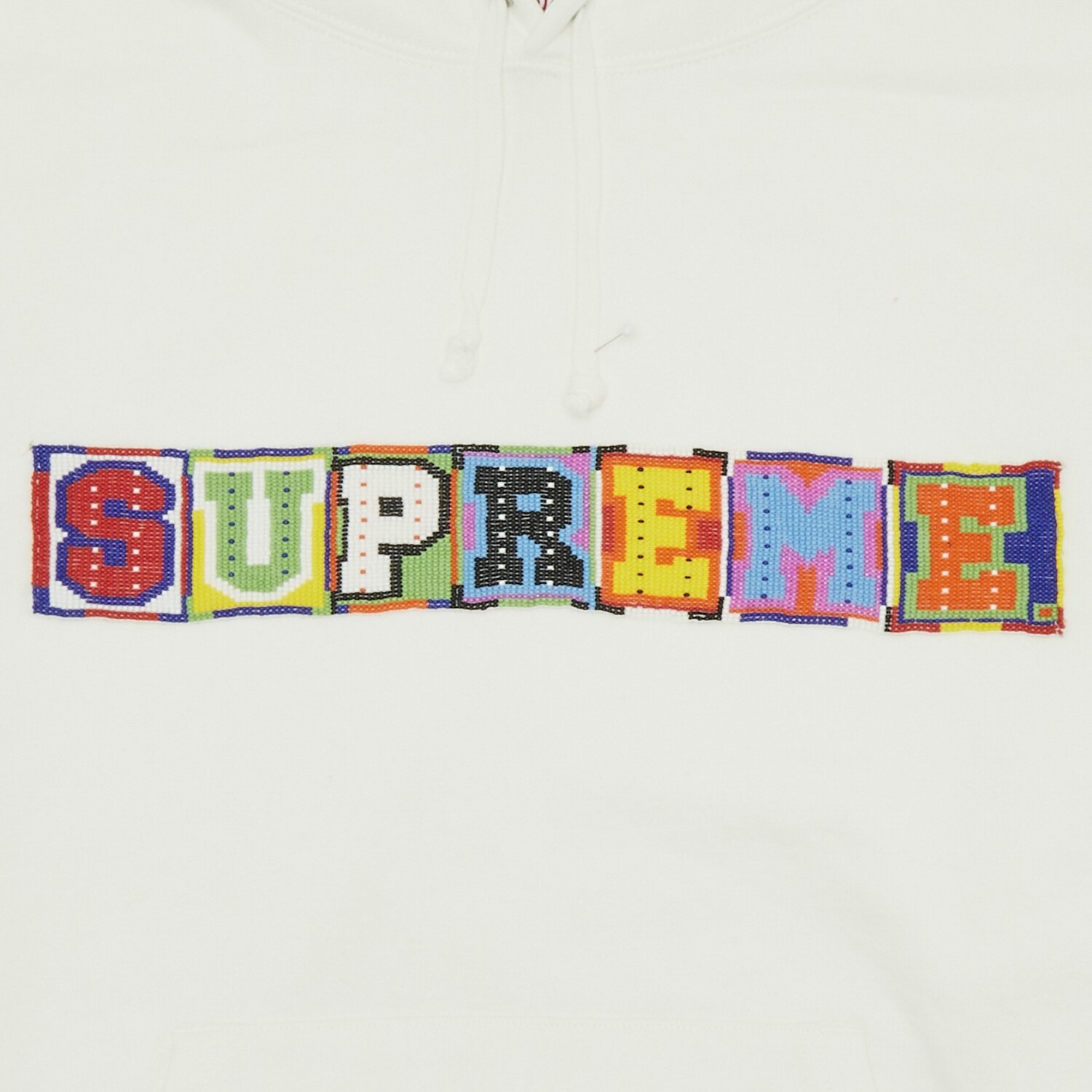 Толстовка с капюшоном Supreme, расшитая бисером, Белая