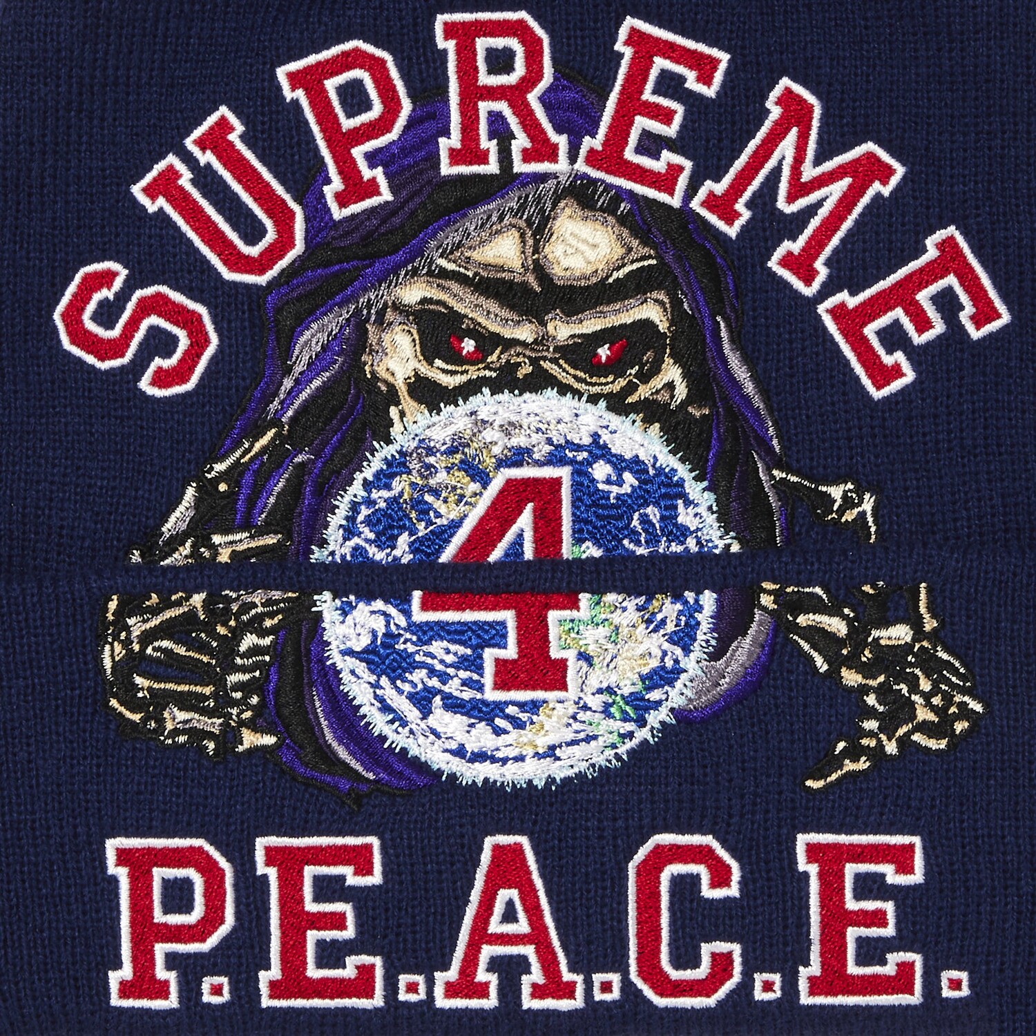 Шапка-бини Supreme Peace с вышивкой, темно-синяя