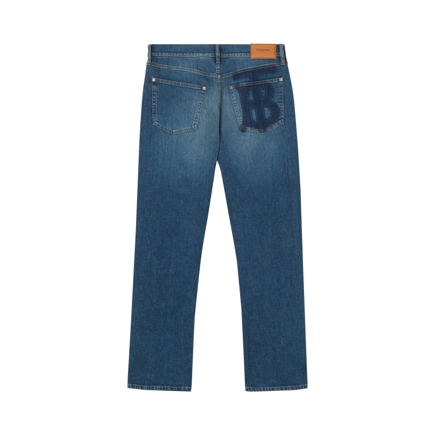 Прямые джинсы с нашивкой-логотипом Burberry Monogram, темно-синий