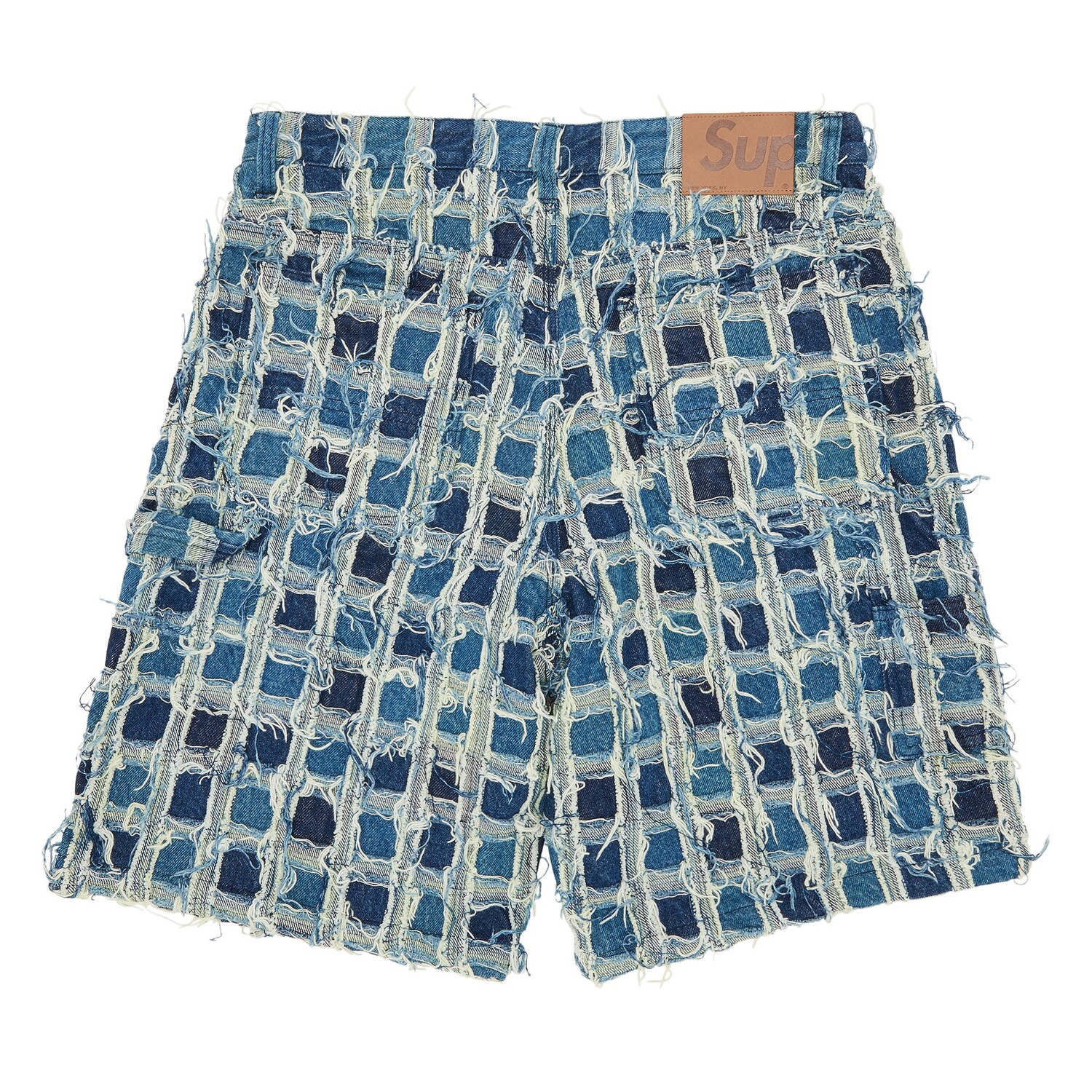Мешковатые джинсовые шорты Supreme с потертостями в стиле пэчворк, цвет Washed Blue