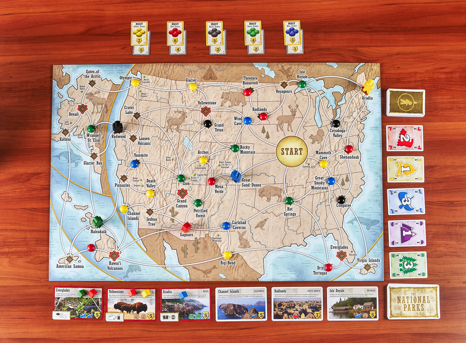 Путешествие по национальным паркам приносит веселье и бросает вызов современным семейным настольным играм. Игра была специально разработана так, чтобы игроки могли совмещать развлечение и образование. Каждая карточка содержит интересный факт и великолепную фотографию, которая вдохновит игроков на изучение охраняемых природных чудес Америки. Каждая новая партия игры отличается от предыдущей благодаря уникальной настройке, меняющей игровой процесс. Идеальный подарок для всех, кто любит природу и настольные игры.
