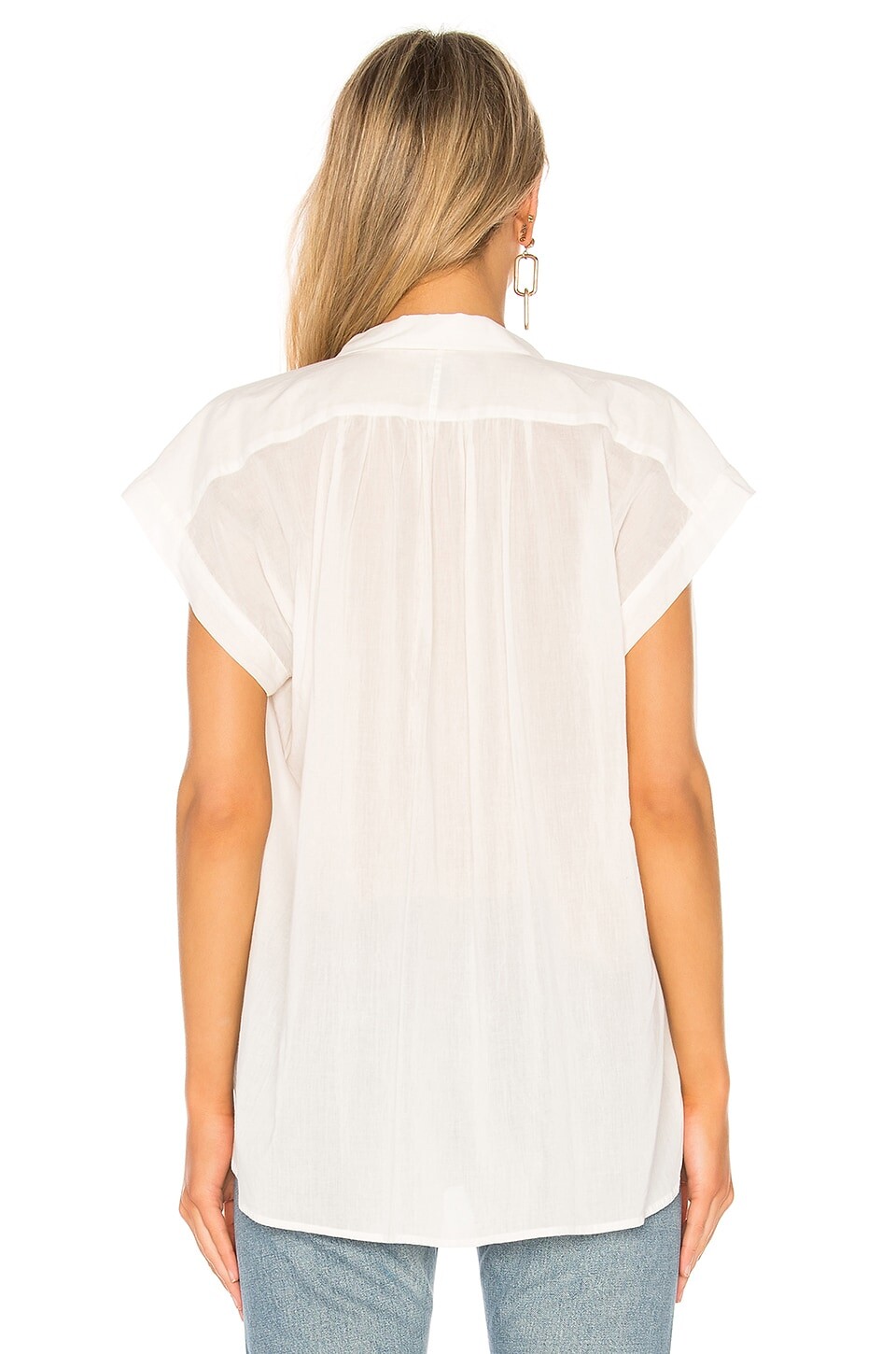 • Струящиеся складки на плечах обрамляют блузку Normandy от Nili Lotan. Планка на пуговицах с V-образным вырезом, образующая волнистую мягкость, изготовлена из прозрачного хлопка.