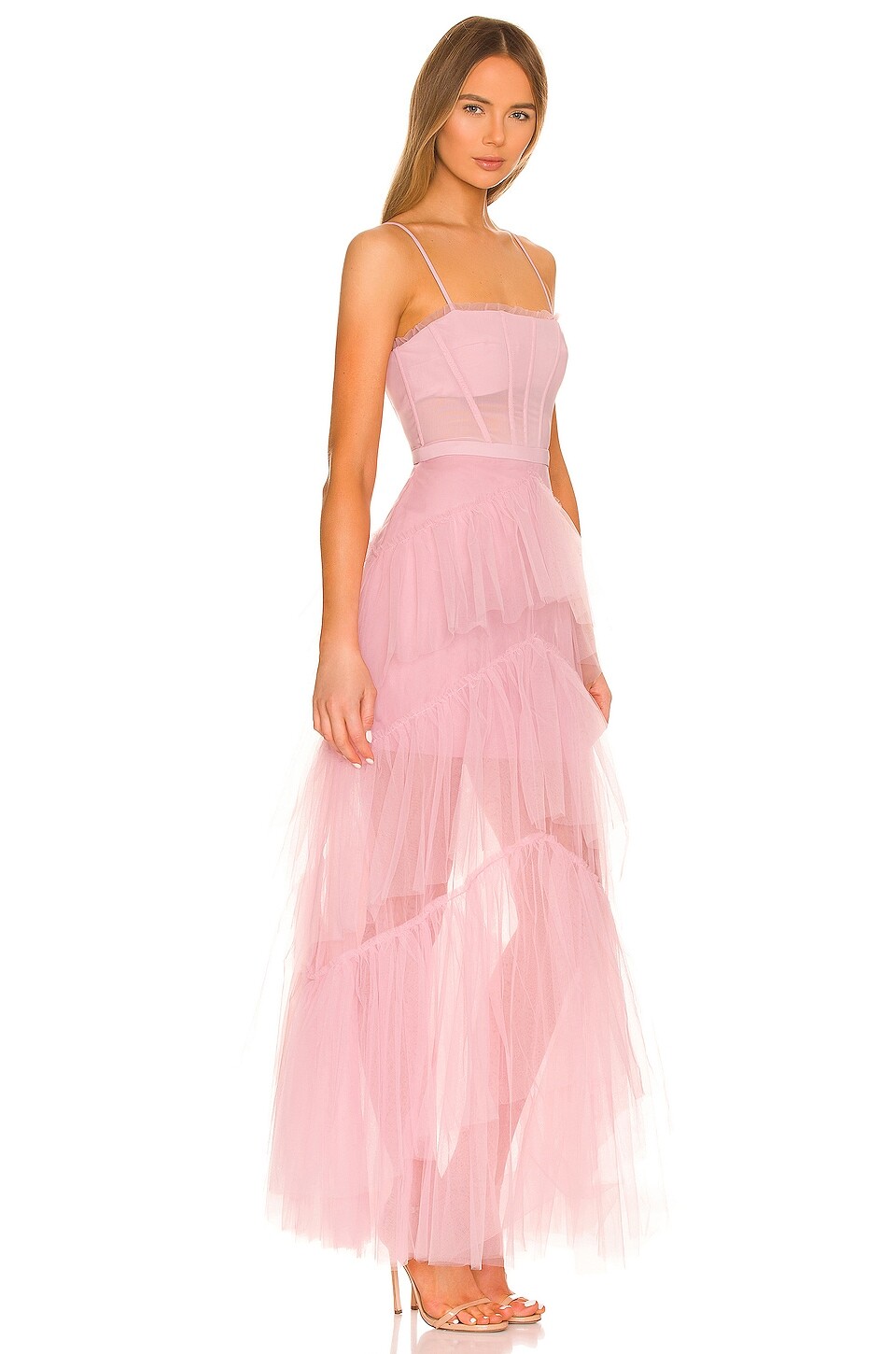 Платье BCBGMAXAZRIA Corset Tulle Gown, цвет Pink Rose