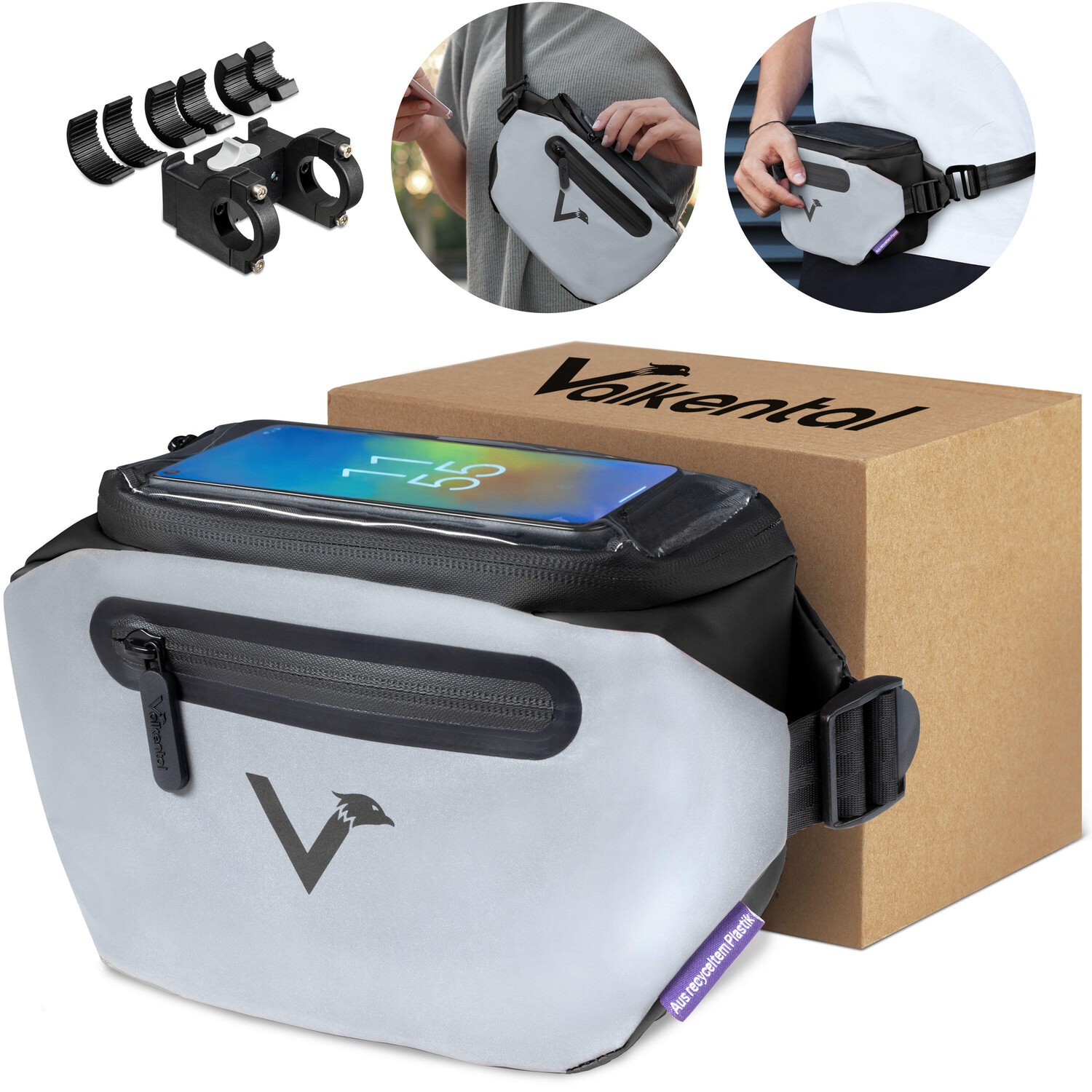 НОВИНКА 2022: ГОРОДСКАЯ СУМКА 3 в 1. Городская сумка от Valkental это инновационная сумка на руль со светоотражающей передней Частью, которую можно превратить в поясную сумку и боковую Часть. сумка и поэтому идеально подходит для повседневной городской жизни.