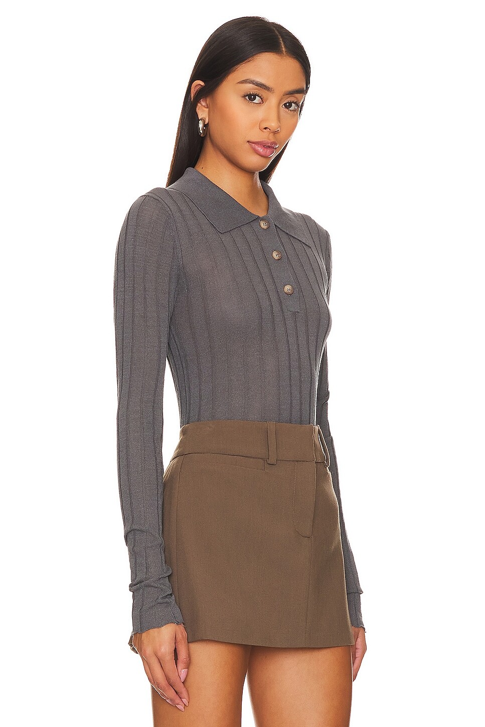 • Рубчатый трикотаж с воротником на пуговицах