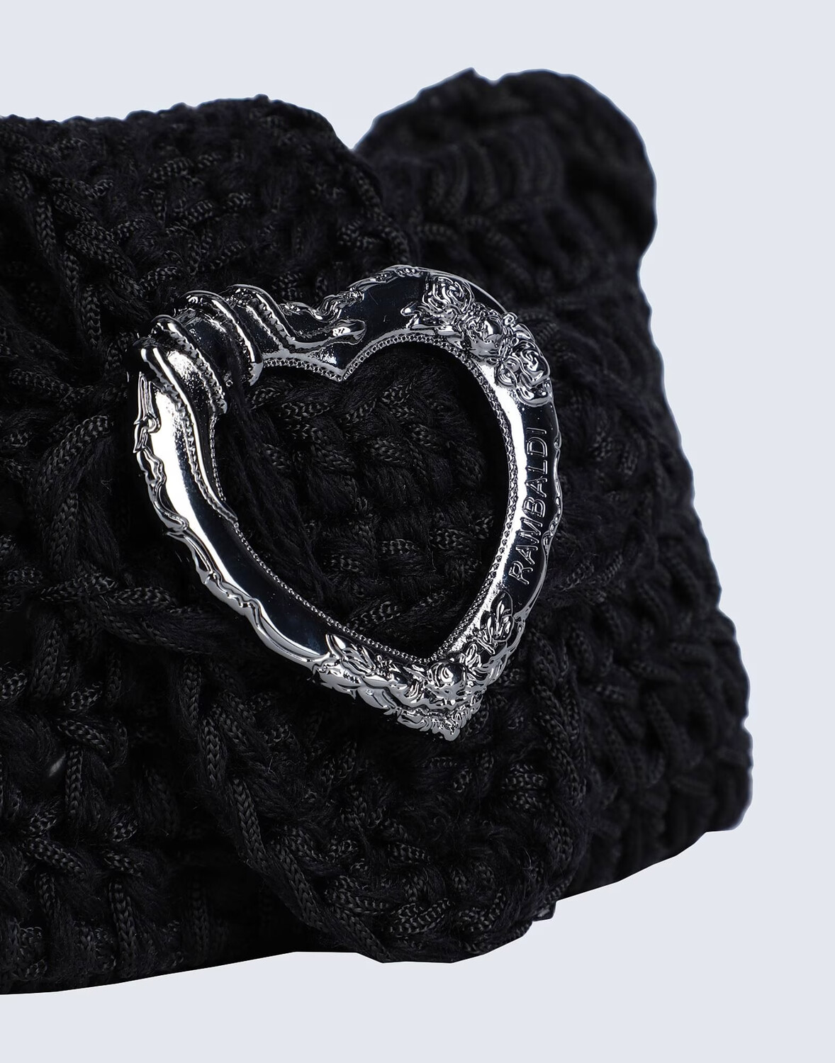 Трикотажная вязаная сумка с пряжкой в виде сердца.