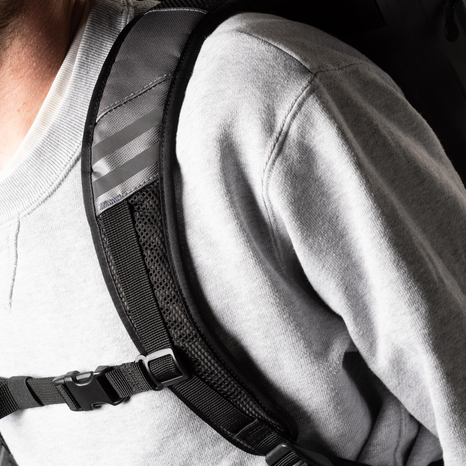 Встроенные светоотражающие полосы на ремнях и на передней части рюкзака.