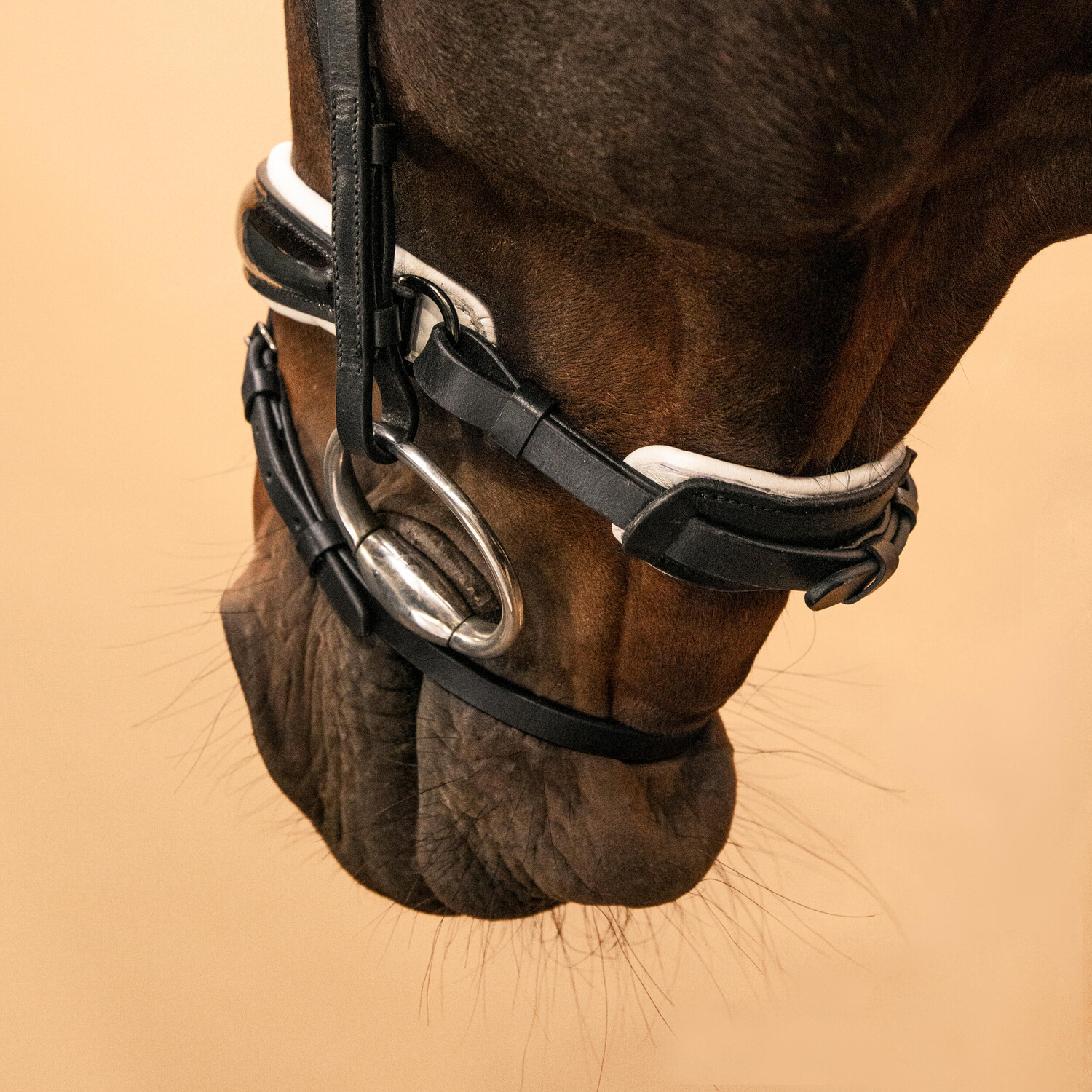 Анатомическая уздечка уменьшает давление на шею и голову и обеспечивает выездковой лошади максимальный комфорт. Вы ищете удобную уздечку для выездковой лошади? Эта уздечка с анатомическим головным убором, V-образной налобницей и защитной накладкой уменьшает точки давления в области головы.