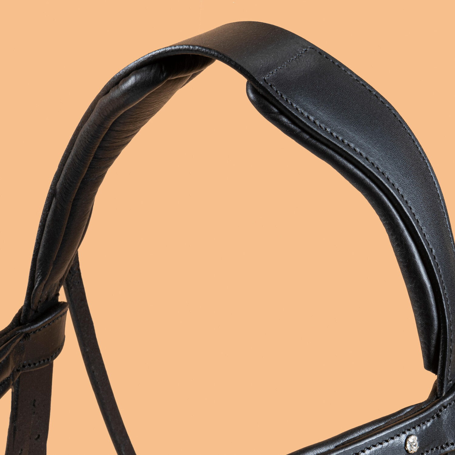 Зоны наиболее сильного контакта покрыты мягкой пеной для комфорта лошади. Подкладка расположена на оголовье (особое внимание мы уделили подкладке на шее) и капсюле.