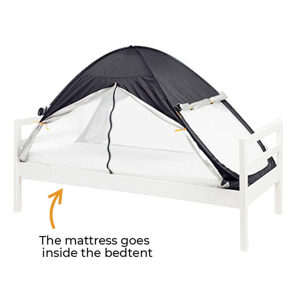 Матрас легко помещается в палатку сбоку без необходимости приходится их неловко шевелить. В летние месяцы сетка с отверстиями менее 1 мм гарантирует, что вашего ребенка не беспокоят комары во время сна, но при этом он может хорошо проветривать. Благодаря прозрачной москитной сетке постельного белья вашему ребенку будет особенно комфортно спать или играть в нем. Кроме того, благодаря прозрачной сетке вы всегда можете следить за ними.