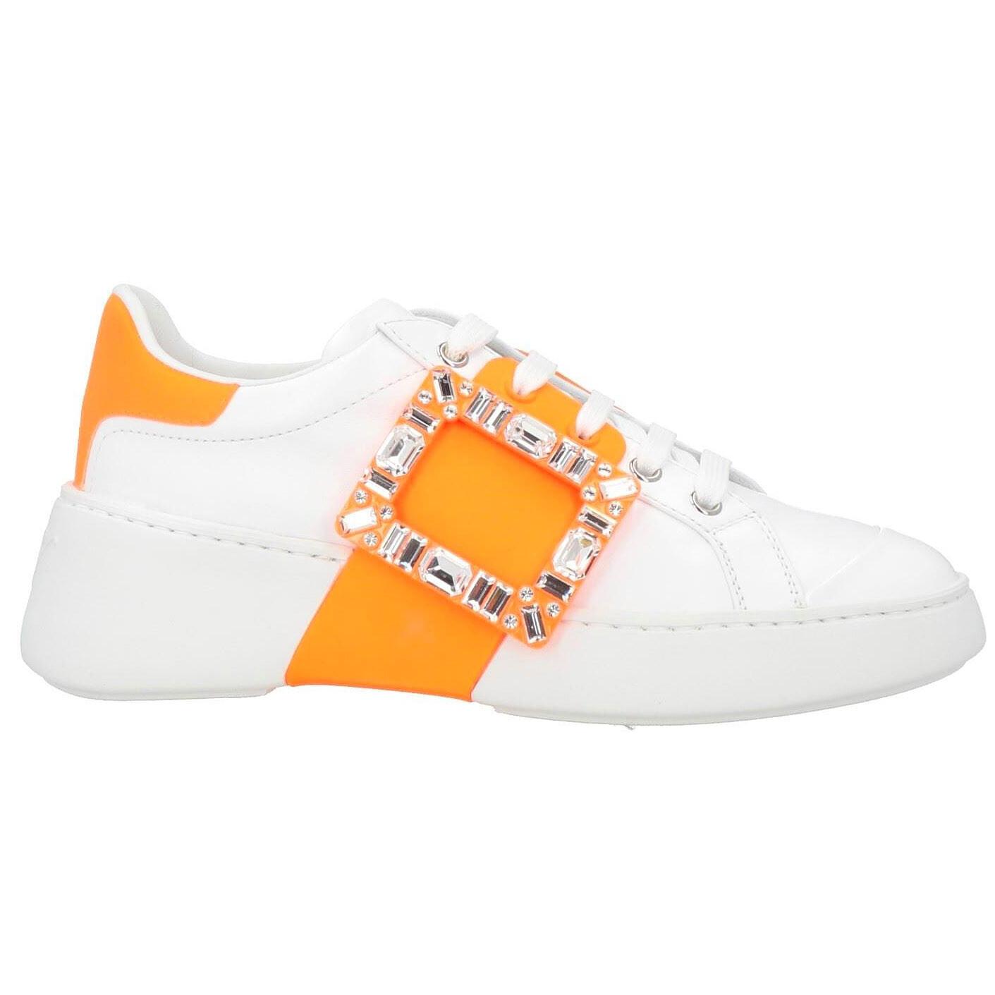 Женские кожаные кроссовки с украшением Roger Vivier.