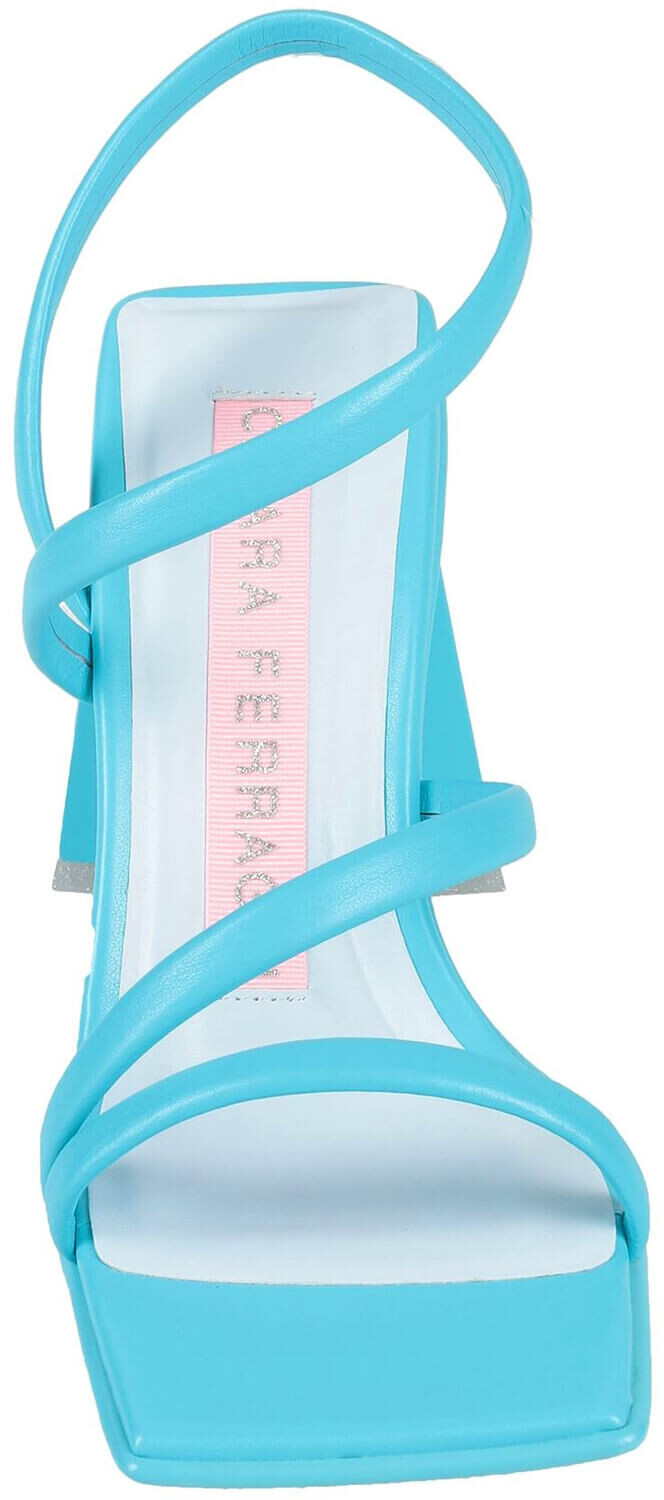 Сандалии бирюзового цвета с ремешками из кожи в тон, кожаной стелькой. Каблук-звездочка.