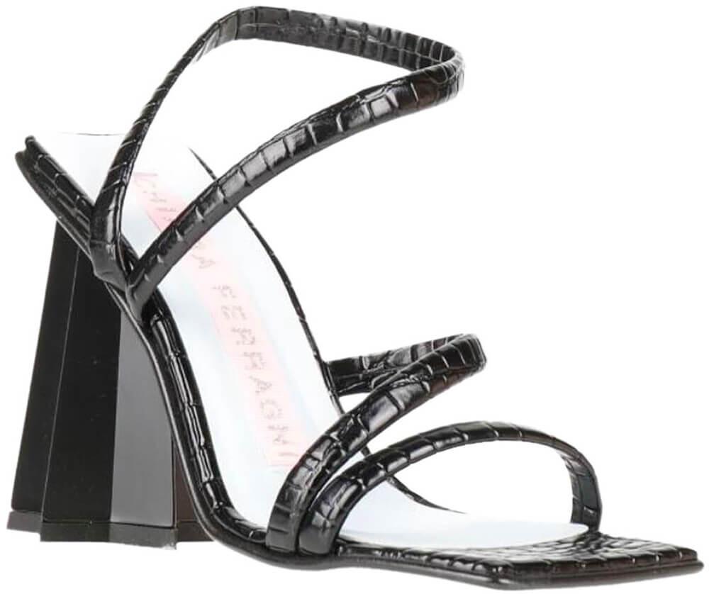 Сандалии черного цвета с ремешками в тон, кожаной стелькой. Каблук-звездочка.