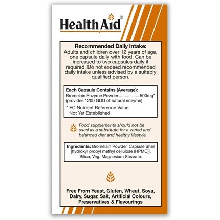 Бромелайн 500 мг 30 растительных капсул, Healthaid