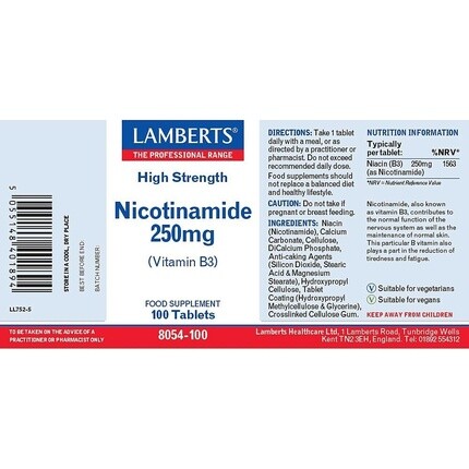 Никотинамид 250 мг Таблетки 100 шт., Lamberts