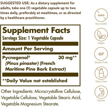 Пикногенол, 30 мг растительные капсулы – упаковка из 30 штук, Solgar