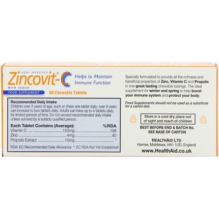 Zincovit C, витамин С и цинк, 60 таблеток, Healthaid 2 676₽