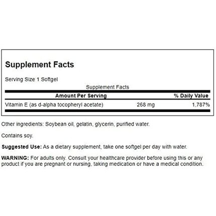 Натуральный витамин Е 400 МЕ 268 мг 100 мягких таблеток, Swanson