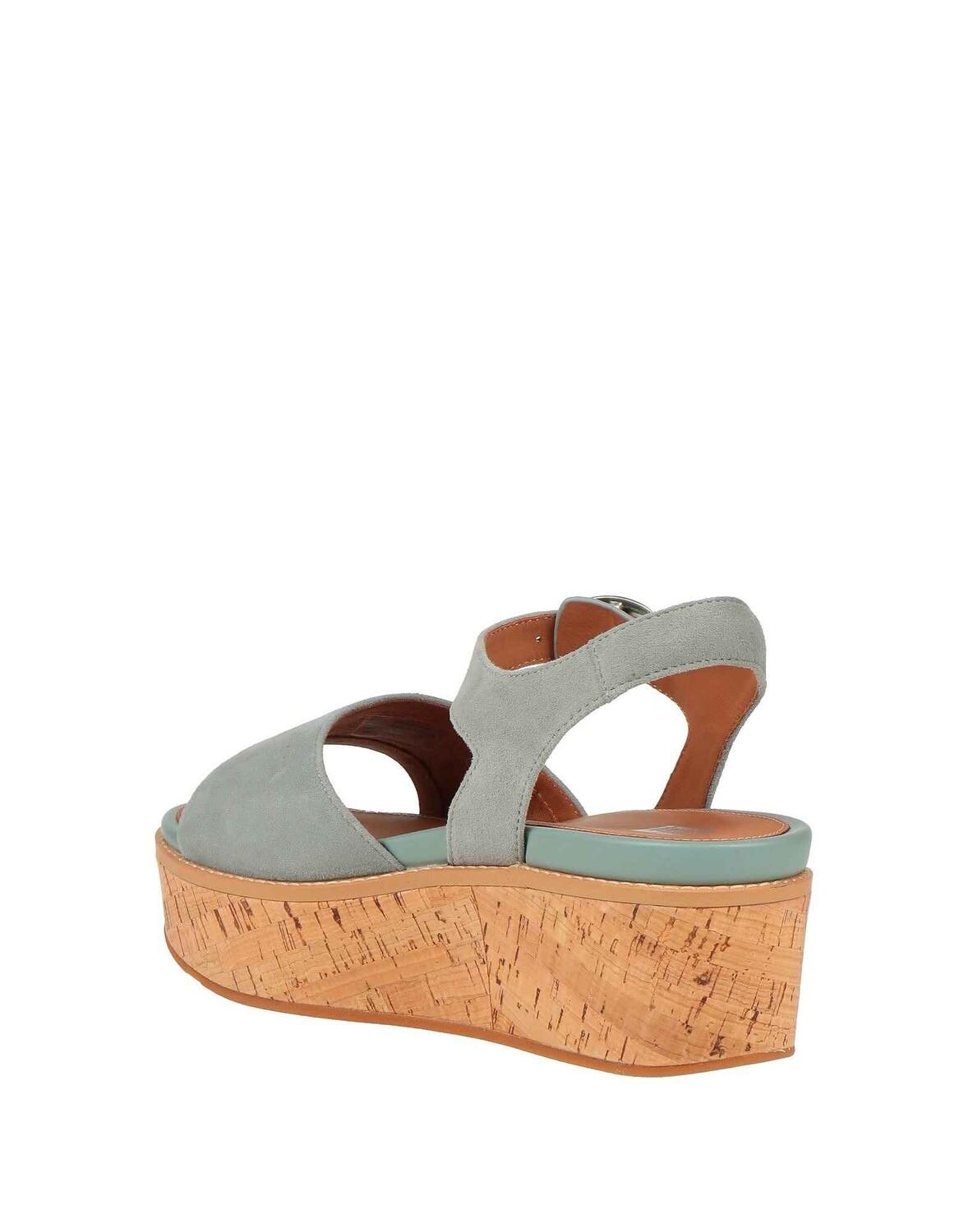 Босоножки на пробковой танкетке с застежкой-пряжкой. Кожаный верх, подкладка из кожи и текстиля. Открытый круглый носок.