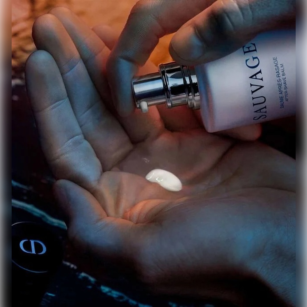 Очистите кожу лица, побрейтесь гелем для бритья, после успокойте кожу бальзамом после бритья Sauvage.