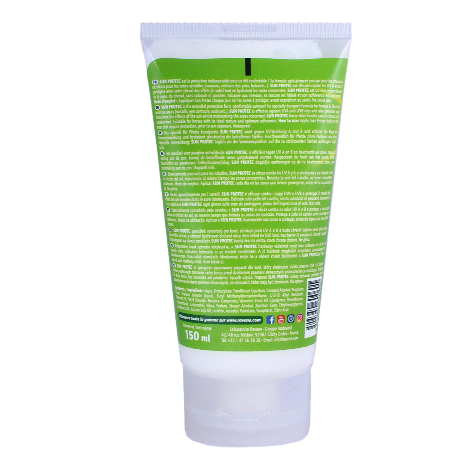 Защищает лошадь от лучей UVA и UVB и увлажняет ее. Sun Protec необходим для комфортного лета! Специальная формула идеально подходит для чувствительных участков тела лошади (ноздри, контуры глаз, белые участки и т. д. ).