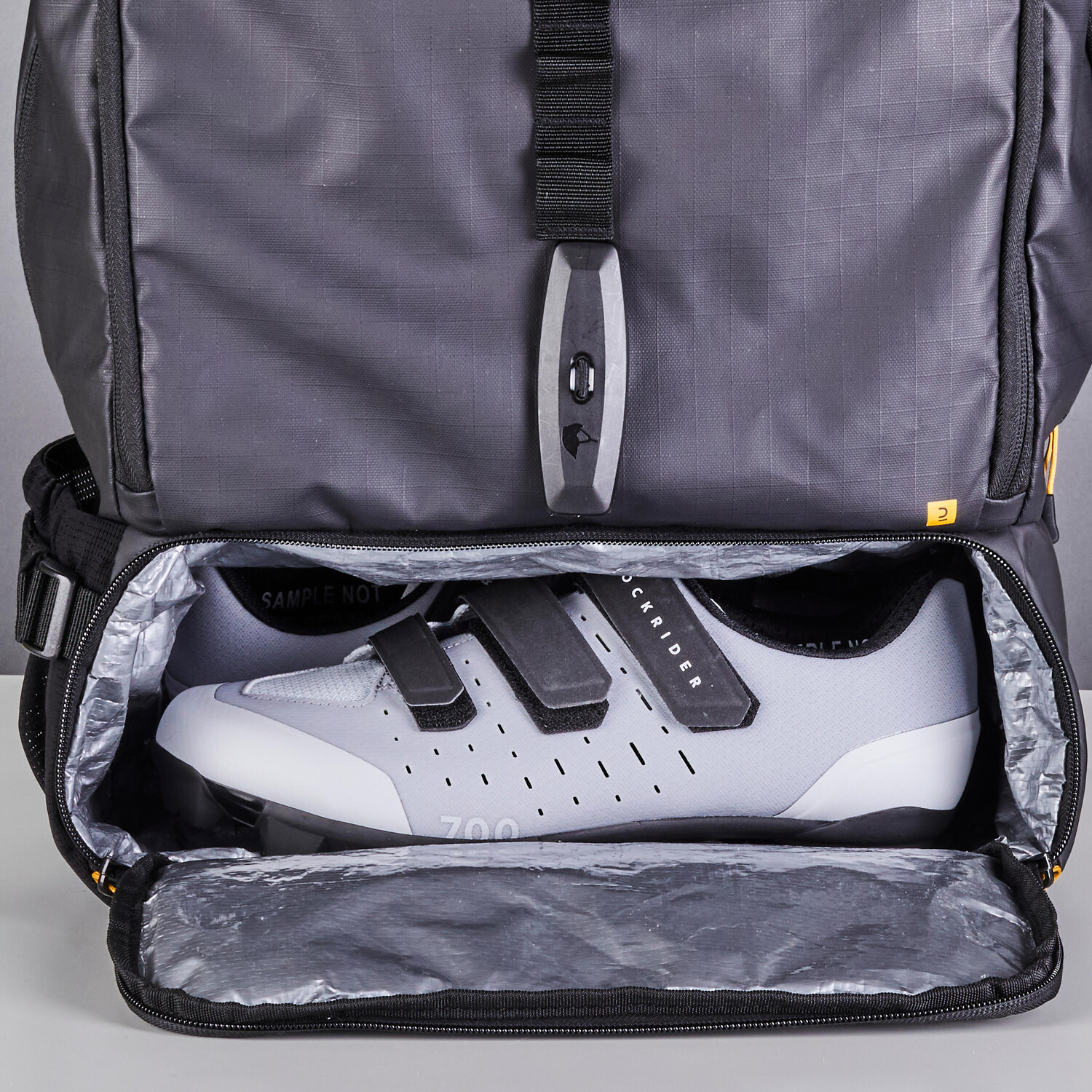 Боковое отверстие на молнии для доступа к основному отделению рюкзака.