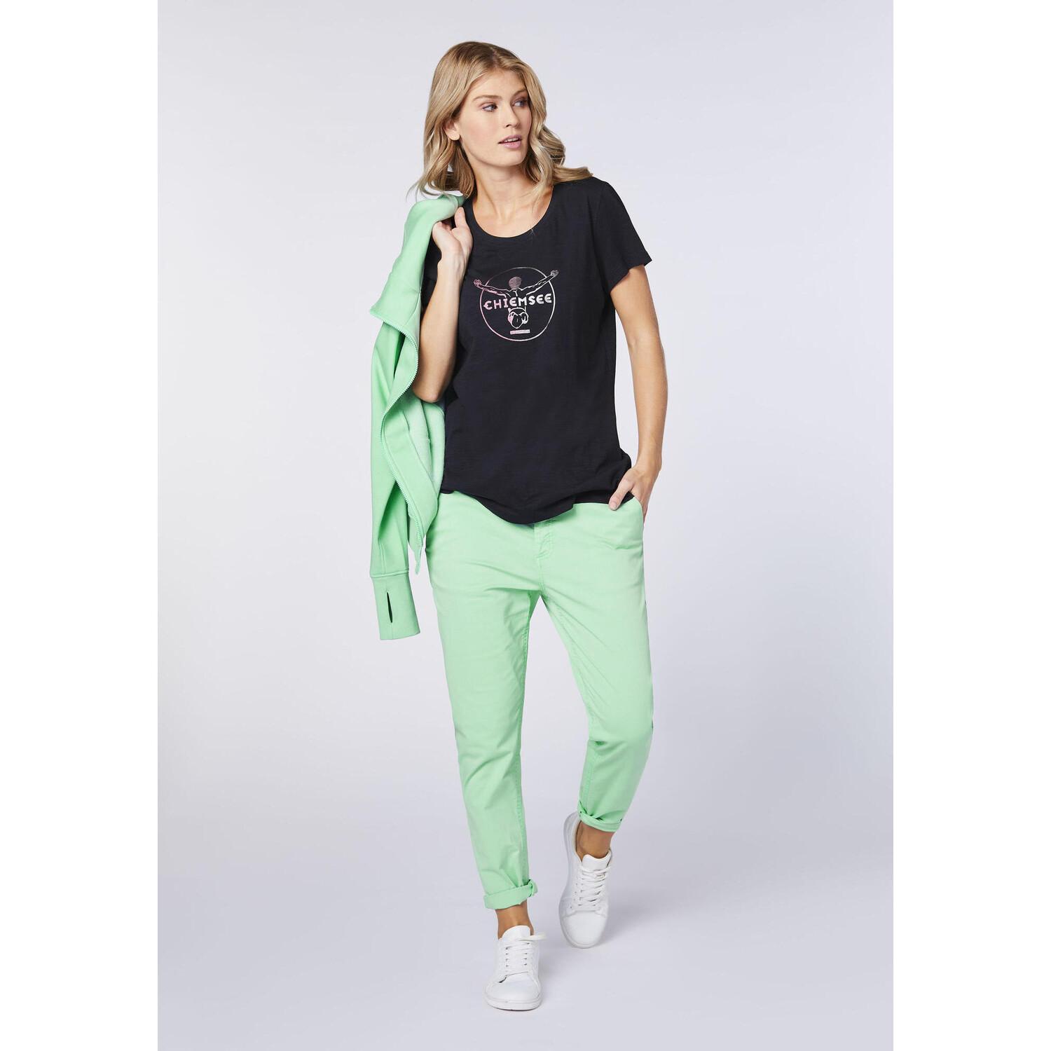 Эта футболка от Chiemsee с необычным принтом спереди в моде. Переливающийся принт с логотипом делает эту рубашку с короткими рукавами отличным дополнением к непринужденному образу для отдыха. Благодаря мягкому органическому хлопку топ сидит идеально.