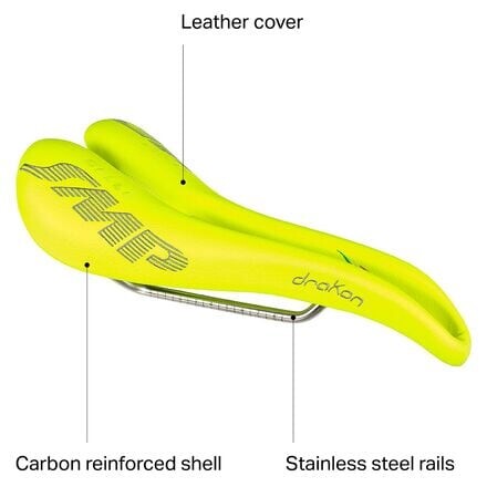 Седла Selle SMP имеют характерный внешний вид, призванный сделать вашу езду максимально комфортной. Данная модель, Drakon, является одной из самых популярных и, как и остальная часть линейки бренда, направлена на устранение слишком распространенной проблемы дискомфорта, связанной с чрезмерным давлением на область промежности и окружающие мягкие ткани. Оно обладает всеми инновационными разработками Selle SMP, обеспечивающими поддержку седла без давления, что в конечном итоге приводит к большему комфорту при длительных поездках. В этом седле Drakon используются направляющие из нержавеющей стали, чтобы сэкономить часть затрат на более дорогую карбоновую версию.