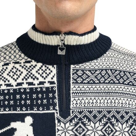 Свитер OL History отдает дань уважения норвежским спортсменам 1952 года. Он имеет классический апре-узор и теплую шерстяную ткань, что делает этот свитер с молнией 1/4 идеальным выбором для вечеров у камина с любимым духом и книгой.