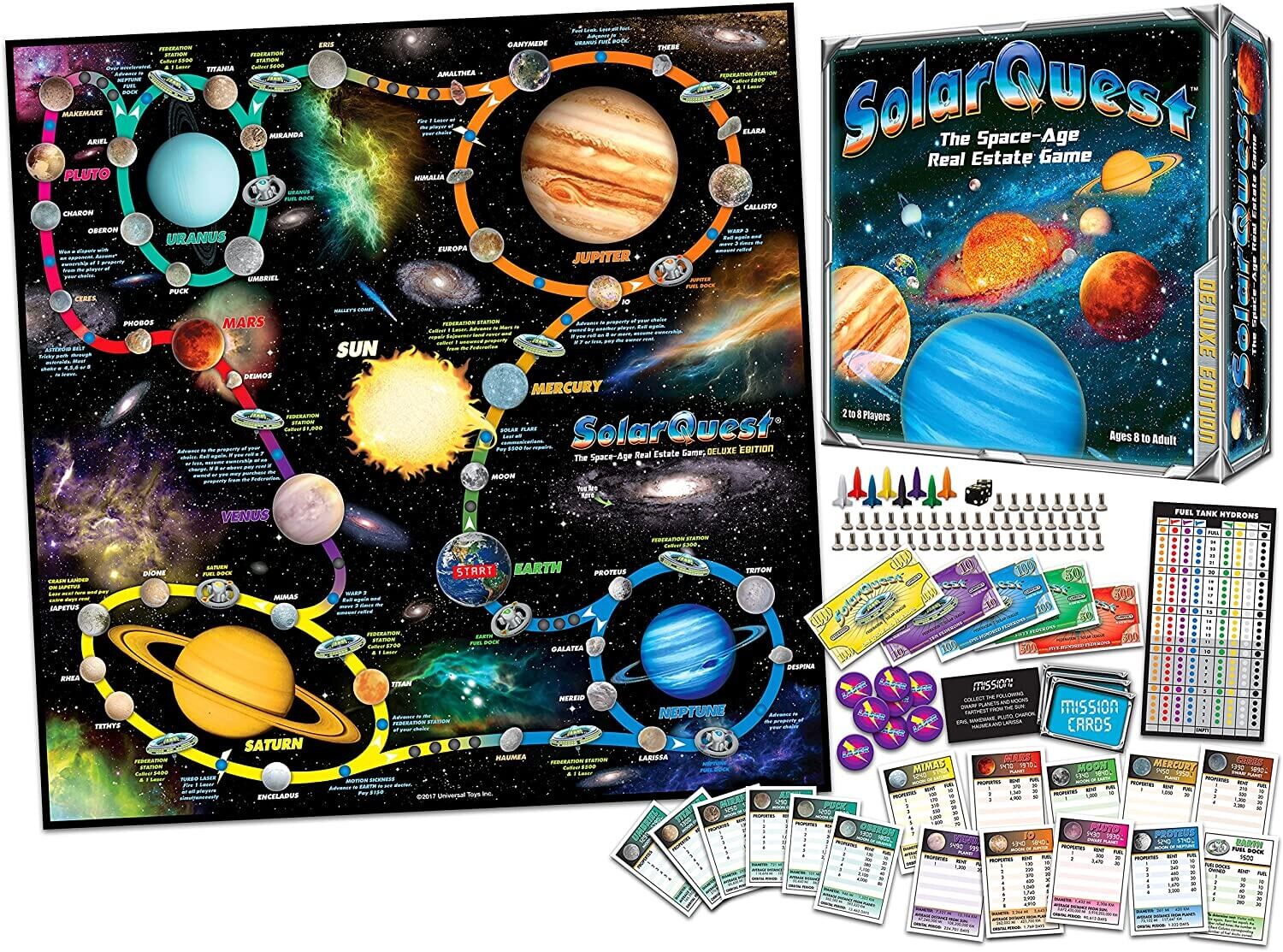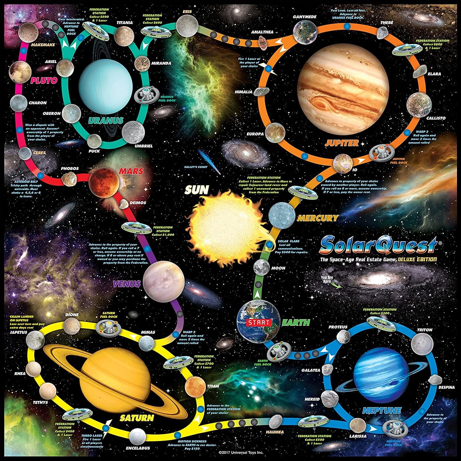 Пристегните ремень безопасности, бросьте кости и начните свое фантастическое путешествие в дальние уголки нашей Солнечной системы, чтобы построить свою финансовую империю. Ваша миссия состоит в том, чтобы создать монополии в планетарных системах и выполнить особое задание, избегая банкротства и опасностей космических путешествий. Вся семья будет наслаждаться многочасовыми захватывающими космическими приключениями. Игра имеет два уровня сложности.