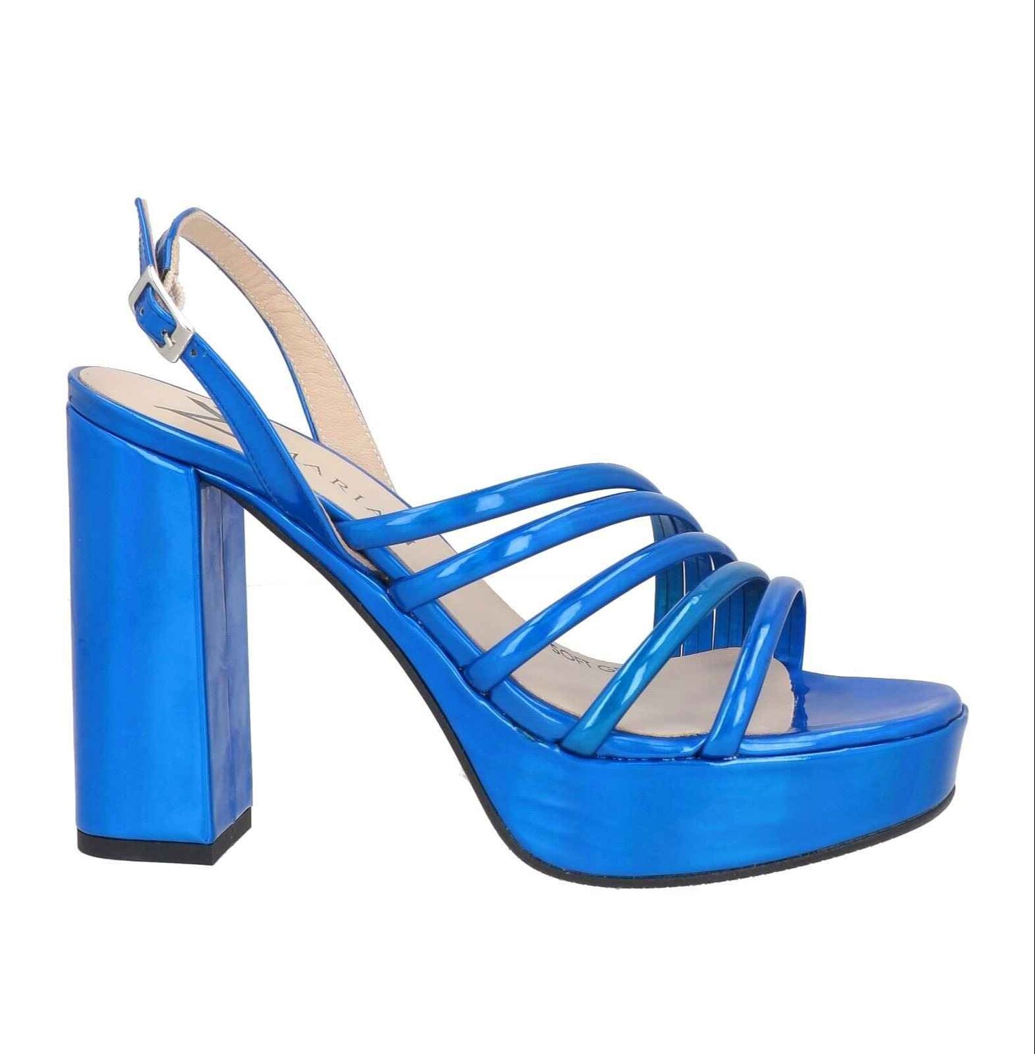 Босоножки на высоком блочном каблуке — стильный и удобный выбор для любого случая. Верх выполнен из текстиля с эффектом ламинирования, ремешок на щиколотке с пряжкой, круглый носок, квадратный каблук.
