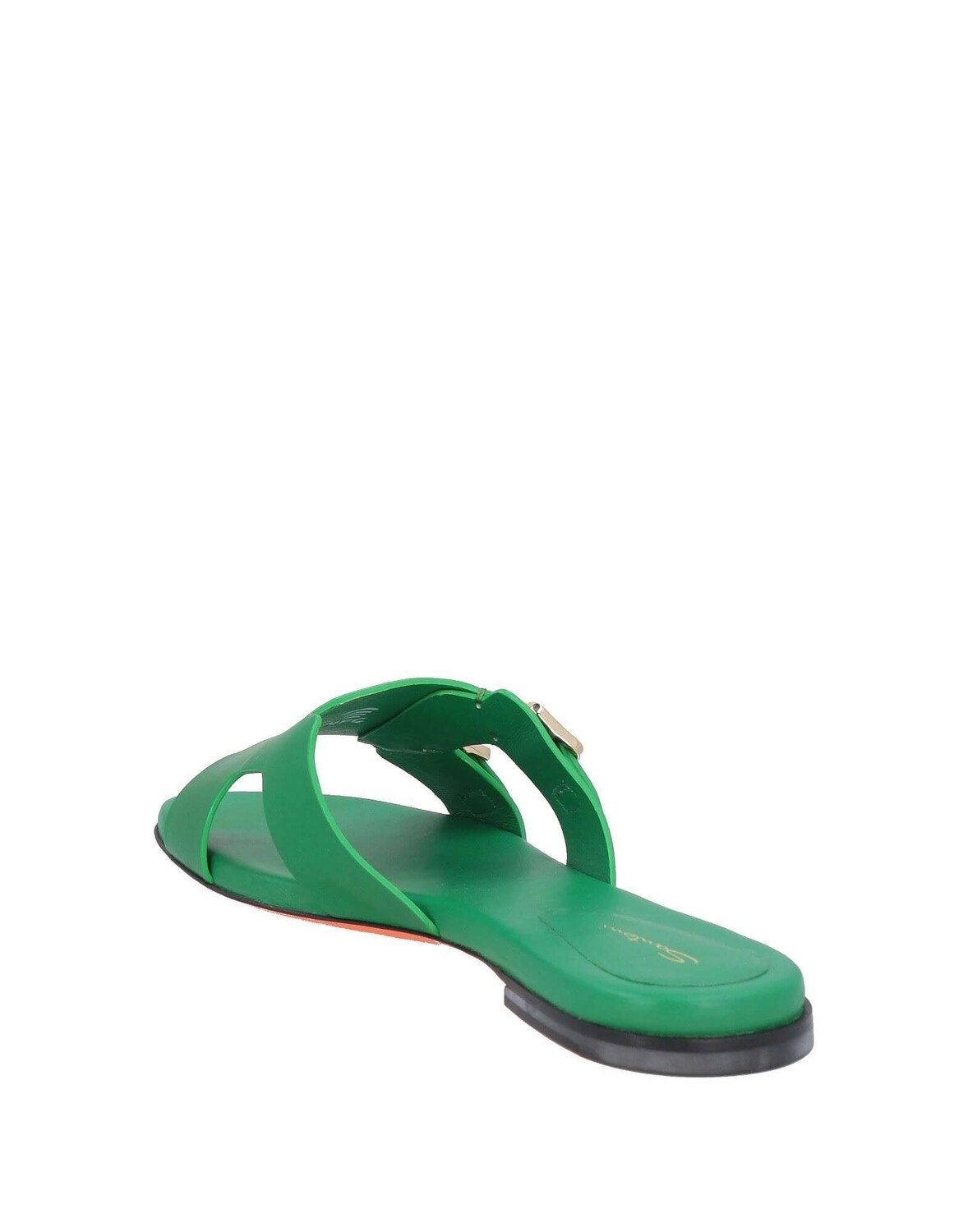 Сандалии из натуральной кожи без каблука, с квадратным носком, с декоративными пряжками.