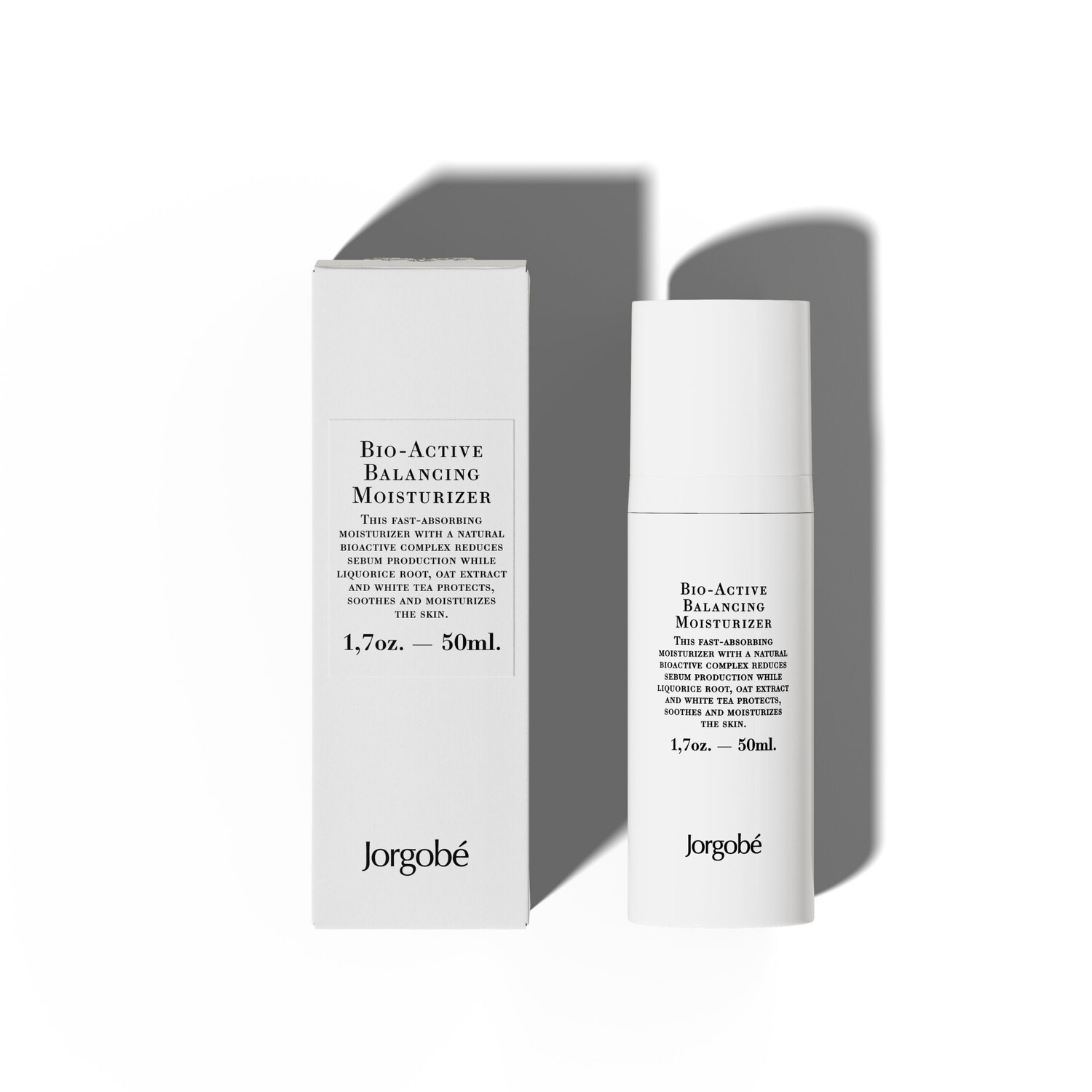 Jorgobé – bio-active balancing moisturizer – быстро впитывающийся увлажняющий крем с натуральным биоактивным комплексом снижает выработку кожного сала, а корень солодки, экстракт овса и белый чай защищают, успокаивают и увлажняют кожу. интеллектуальная формула была разработана для регулирования и уменьшения секреции кожного сала, одновременно обеспечивая глубокое увлажнение сухой кожи. этот природный биоактивный комплекс помогает коже восстановить естественный баланс. масло жожоба увлажняет и защищает от пересыхания, а масла арганы и кунжута смягчают и питают кожу. корень солодки, сахарная свекла и розмарин выравнивают тон кожи. 100% веганский продукт без отдушек. 99,7% натуральных ингредиентов. действие: помогает коже восстановить естественный баланс делает кожу более гладкой и увлажненной защищает от преждевременного старения