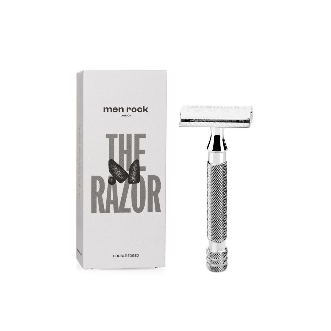 Бритва menrock double edged обеспечивает невероятно чистое бритье. традиционная бритва со сменными лезвиями и классической тяжелой ручкой для комфорта и стиля. чрезвычайно простые в использовании лезвия с обоюдоострыми краями обеспечивают точное и плавное скольжение по коже, удаляя даже короткие волосы и волосы на лице. нержавеющая сталь и наконечник с логотипом menrock для профессионального вида.