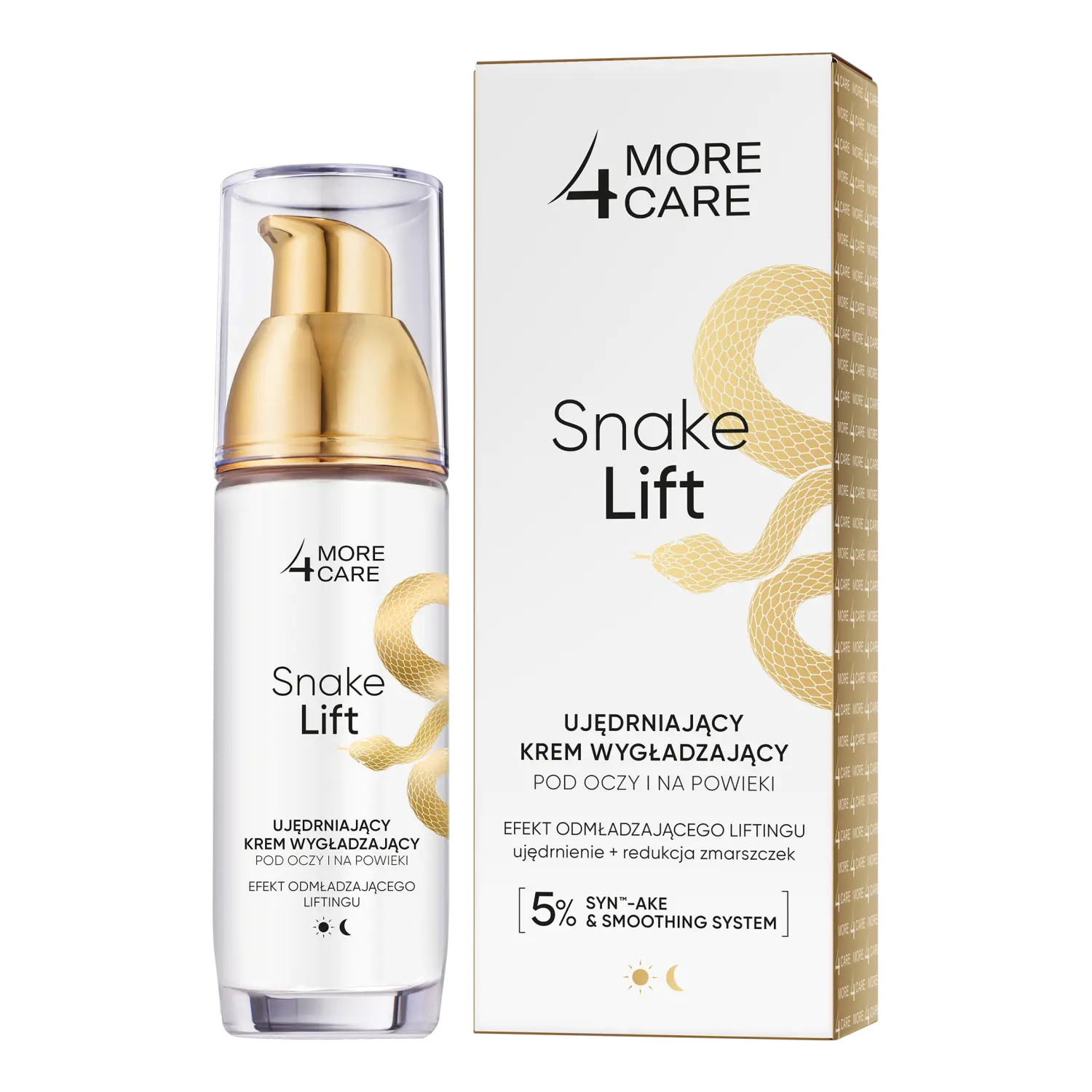 Snake lift – интенсивная линия косметики, разглаживающей морщины. в его основе лежат инновационные активные ингредиенты и современные технологии... расширенное действие активных ингредиентов: 5% syntm-ake & smoothing system – его основной ингредиент – syntm-ake (биомиметический трипептид), который представляет собой синтетический нейропептид с доказанной эффективностью, имитирующий действие токсина яда гадюки. эффективно разглаживает кожу, предотвращает ее провисание и образование новых мимических морщин. lic-anti age – минеральный аминокислотный комплекс, достигая более глубоких слоев эпидермиса, активирует регенеративные и репаративные механизмы, приводящие к повышению эластичности и увлажненности кожи. . в результате морщины становятся менее заметными, а контур лица меняется... витамин е – антиоксидант, нейтрализующий свободные радикалы, поддерживает эффект против морщин, защищая кожу от потери коллагена. гиалуроновая кислота – благодаря своим способность связывать большое количество молекул воды, прекрасно увлажняет кожу... . укрепляющий разглаживающий крем snake lift – это больше, чем просто крем для глаз и век. в этом сила ампулы в составе крема, которая за счет механизмов реконструкции и обновления кожи дает эффект омоложения вида... . усовершенствованная формула с 5% технологией syntm-ake & smoothing system и микроносителями, способствующими проникновению активных веществ глубоко в эпидермис: повышает упругость кожи. моделирует контур глаз, оказывая лифтинг-эффект. уменьшает видимость морщин. улучшает тон кожи... эффективность подтверждена в клинических исследованиях:. 91% интенсивное увлажнение. 89% заметное сглаживание. 72% регенерация и глубокая реконструкция. тестирование применения проведено в независимой исследовательской лаборатории через 4 недели использования крема для глаз и век.syntm является торговой маркой dsm.
