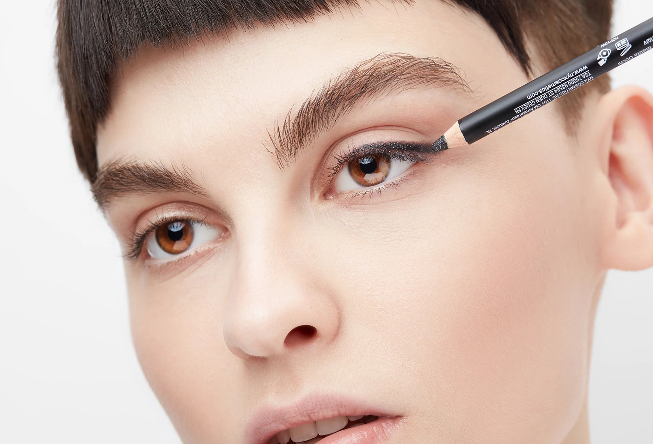 Нанесите карандаш на верхнее или нижнее веко, начиная со внутреннего уголка глаза, двигаясь к внешнему.