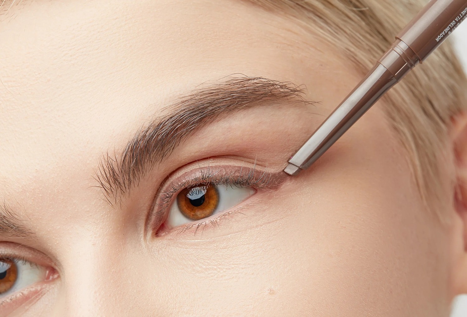 Нарисуйте стрелку и вытяните ее по направлению к виску. Растушуй стрелку щеточкой на обратной стороне лайнера в дымку, делая взгляд более подтянутым и дерзким.