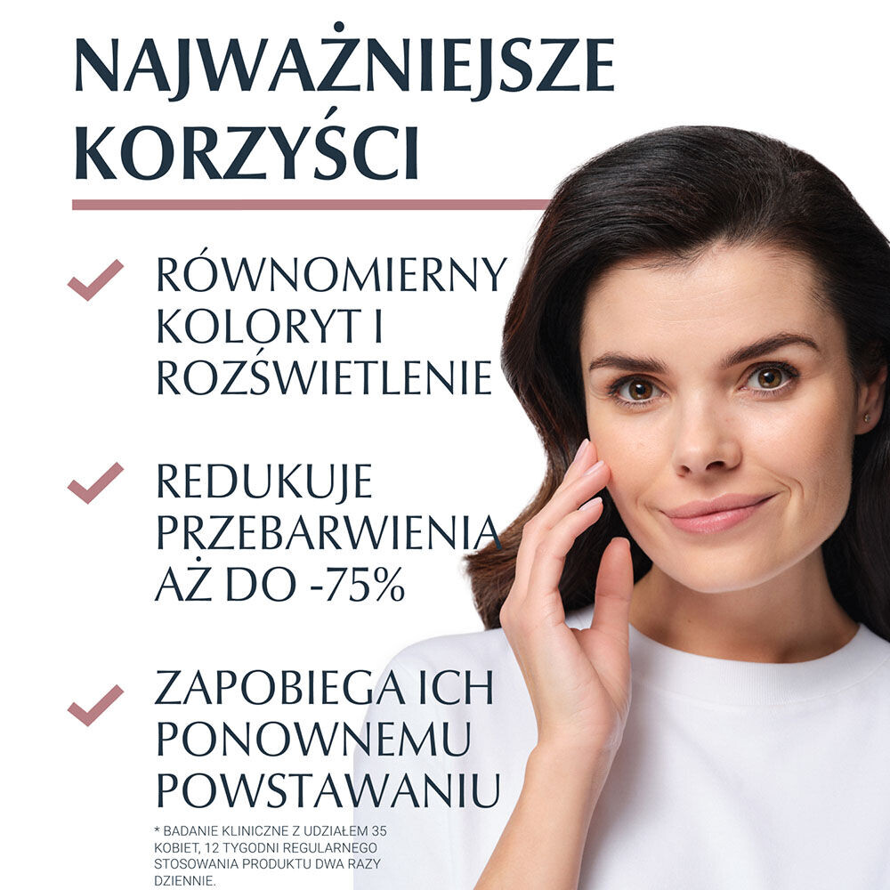 Eucerin anti-pigment serum двойного действия – революционная сыворотка от обесцвечивания, которая работает! . неконтролируемое пребывание на солнце, влияние гормонов и процессы старения могут привести к увеличению выработки меланина, что и является причиной изменения цвета. . eucerin serum anti-pigment с двойным действием на пигментные пятна уменьшает пятна до -75% и предотвращает образование новых пятен, а эффект в виде осветленных пятен виден уже через 2 недели после начала использования. . благодаря запатентованному ингредиенту тиамидолу сыворотка эффективна против всех типов изменений цвета, включая солнечные пятна, гормональные изменения, поствоспалительные изменения цвета и изменения цвета, связанные с естественным процессом старения кожи.