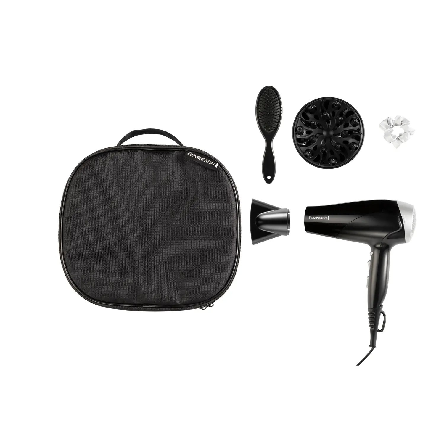 Подарочный набор, содержащий фен мощностью 2200 вт с 3 режимами температуры и 2 скоростями, а также расческу, атласную резинку для волос и сумку для хранения всех аксессуаров. подарите своим близким красивые и блестящие волосы благодаря набору фенов style edition от remington. это чрезвычайно интуитивно понятное устройство мощностью 2200 вт, сравнимое с фенами, используемыми в парикмахерских. эта модель имеет 3 температурных режима и 2 скоростных режима, поэтому вы можете подобрать комбинацию параметров, соответствующую потребностям ваших волос. диффузор идеально подходит для сушки волнистых или вьющихся волос, не нарушая их естественную структуру и завиток. в свою очередь концентратор, фокусируя поток воздуха на выбранных участках волос, позволяет сушить их прядь за прядью. помимо насадок в подарочный набор также входит щетка, идеально подходящая для расчесывания волос и создания гладких причесок, атласная резинка и качественный чехол для хранения фена и всех его аксессуаров.