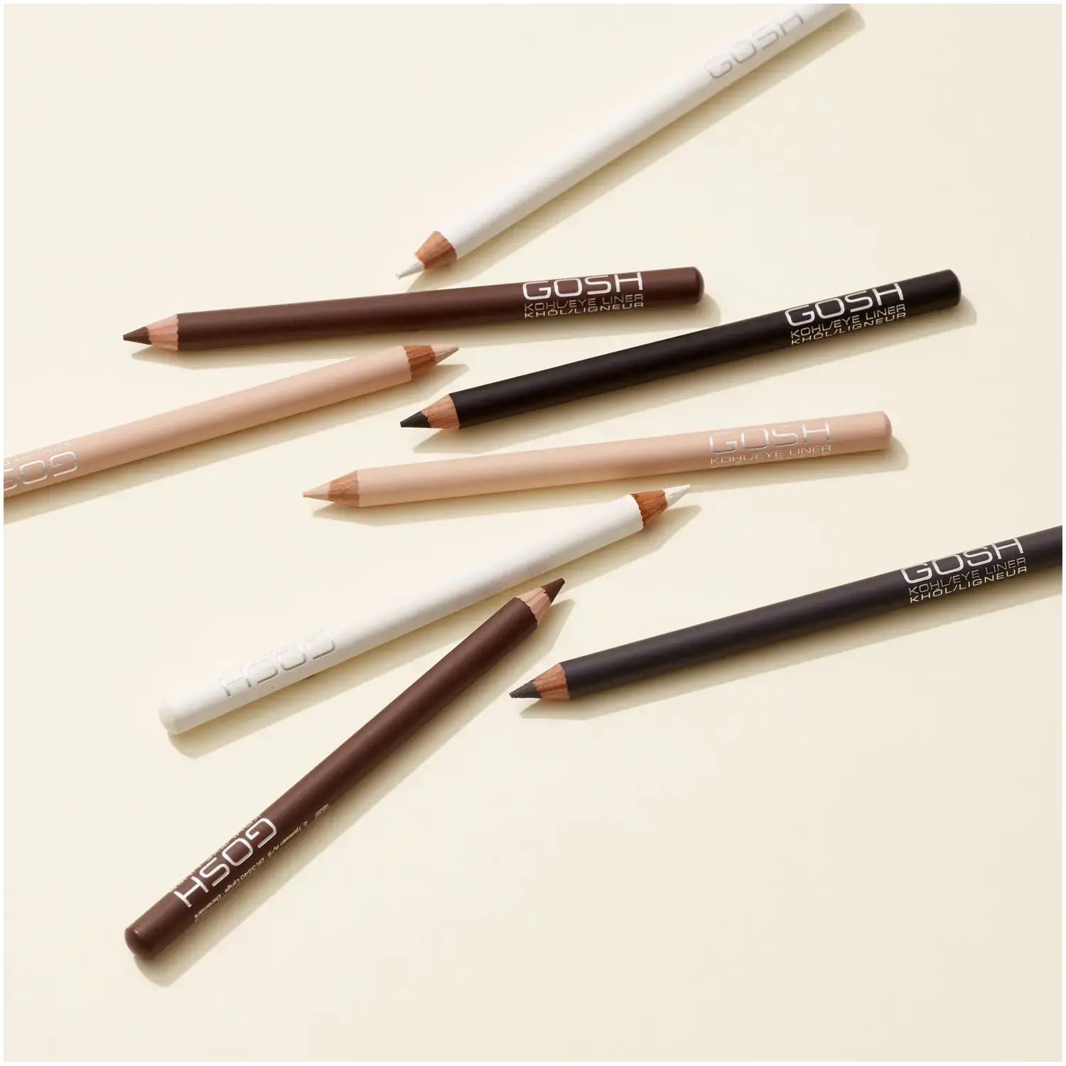 Подводка для глаз gosh — многофункциональный продукт. его можно использовать по ватерлинии верхнего или нижнего века в качестве подводки, по краям век в качестве подводки для глаз и в качестве теней для век. этот фантастический продукт позволяет создавать плавные линии с насыщенным цветом. карандаш прост в использовании и обеспечивает превосходную точность нанесения. можно наносить на ватерлинию глаз гладкое нанесение мягкий кончик содержит витамин е не растекается в морщинах не содержит отдушек веганский продукт