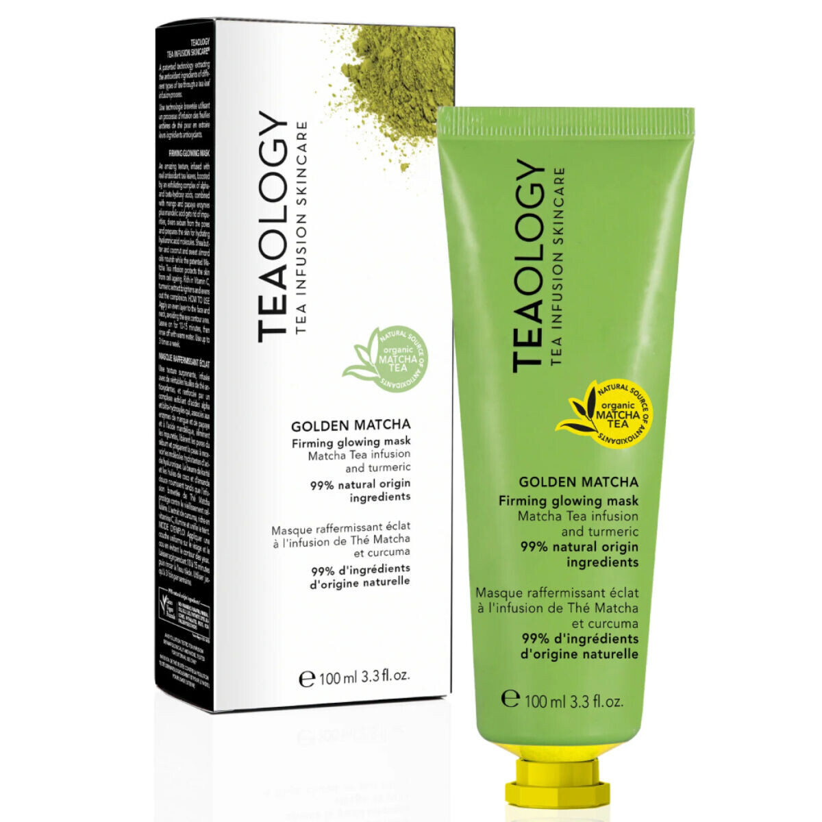 Укрепляющая осветляющая маска с настоем зеленого чая матча и куркумой. по-настоящему профессиональная процедура для лица, вдохновленная древним арьюведическим напитком «золотое молоко», известным своими целебными свойствами. маска с исключительно нежной текстурой, насыщенная чайными листьями (с антиоксидантными свойствами), комплексом альфа- и бета-гидрокислот (с отшелушивающими свойствами), ферментами манго, папайи и миндальной кислоты (с очищающими свойствами: удаляет загрязнения, очищает поры) и обогащены множеством увлажняющих компонентов и частицами гиалуроновой кислоты. продукт обогащен маслом ши и маслами (кокоса и сладкого миндаля), которые питают и регенерируют кожу. запатентованный настой зеленого чая матча, содержащийся во всех косметических продуктах teaology, тонизирует и защищает кожу от старения клеток. куркума, природный источник витамина с, осветляет и выравнивает тон кожи. идеально подходит для всех типов кожи. особенно рекомендуется для проблемной и комбинированной кожи, для дополнительного очищения и осветления. чистый веганский продукт. дерматологически протестировано. не содержит искусственных красителей и ароматизированных ингредиентов. 99% ингредиентов натурального происхождения. совет красоты: - для ухода за руками: нанеся маску на лицо, оставьте излишки маски на руках на 10 минут. уменьшает пятна и изменения цвета, разглаживает и увлажняет кожу. ваши руки станут моложе и красивее. - в качестве маски для губ: нанесите маску на губы, чтобы сделать их удивительно мягкими и обеспечить дополнительное увлажнение.
