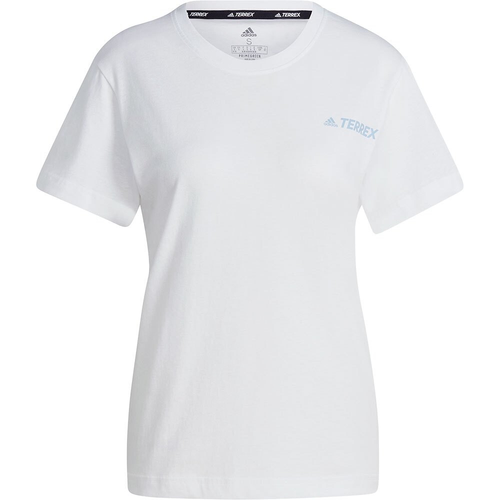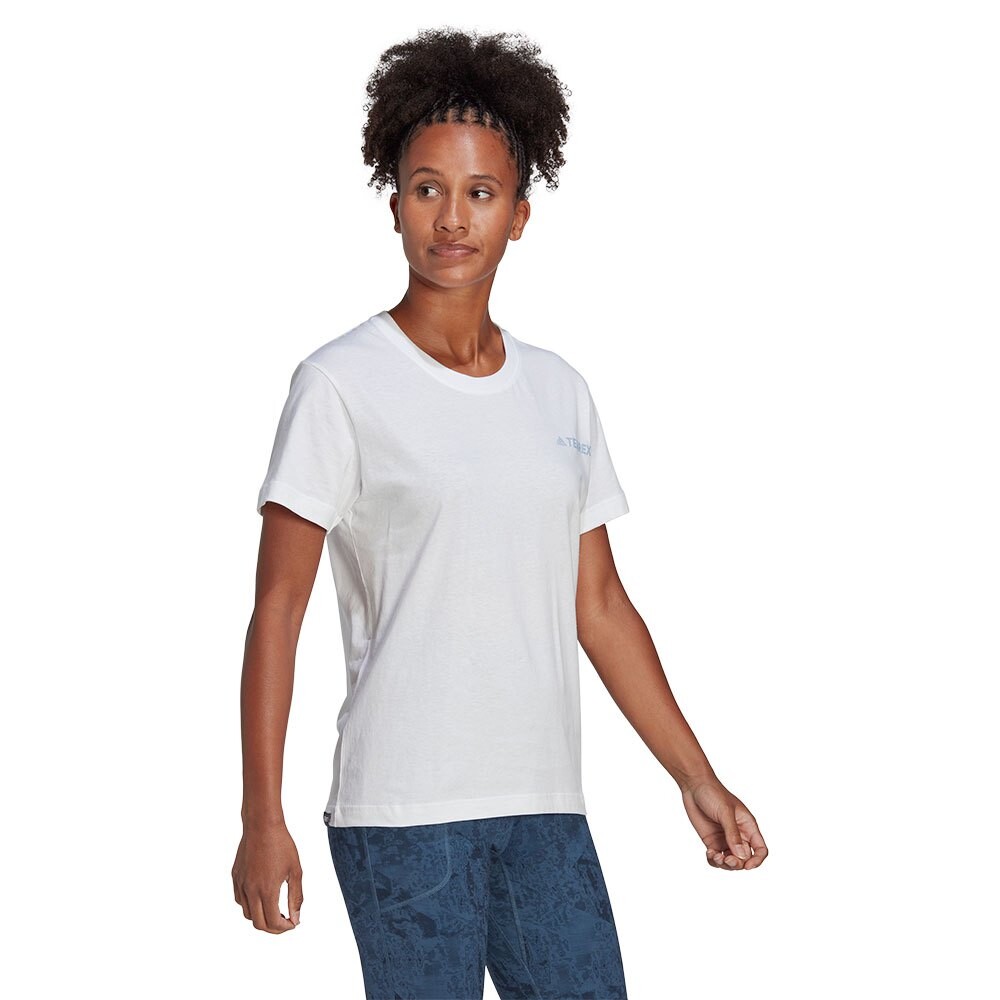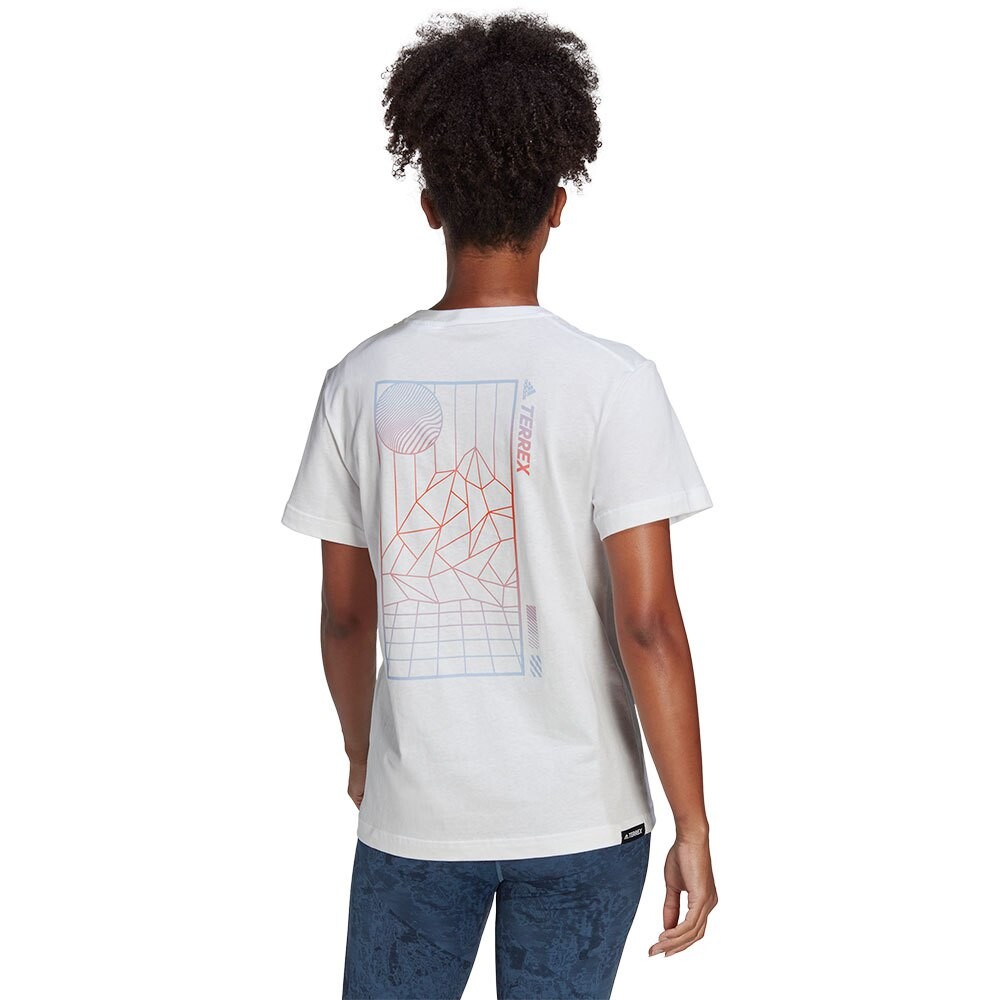 Эта футболка adidas для походов с абстрактной графикой, вдохновленной горами, поможет создать маленькое приключение в любой день.